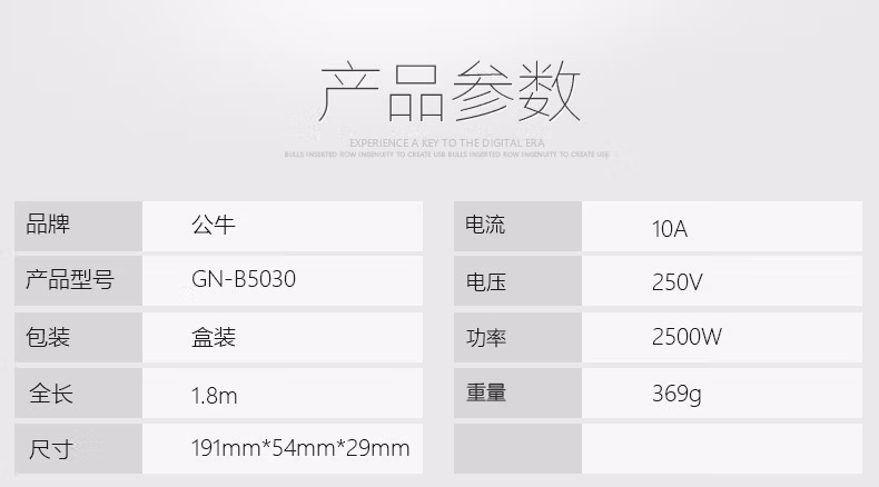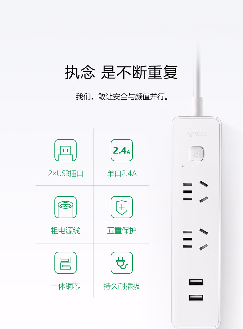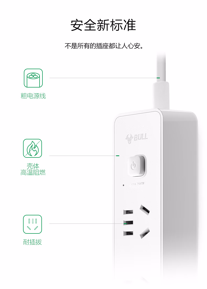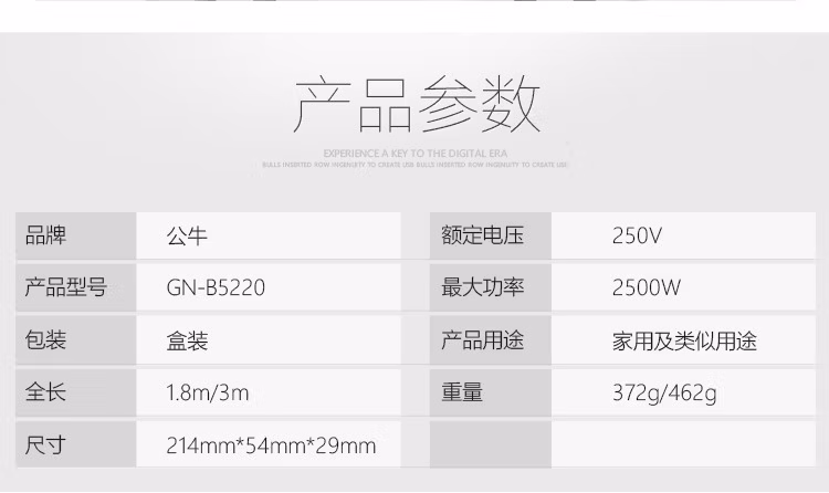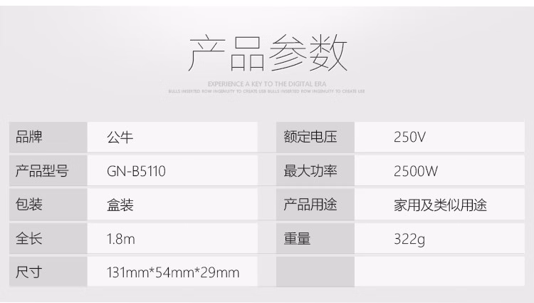公牛(BULL) GN-B5060 总控6位1.8米 插排 (计价单位:个) 白色