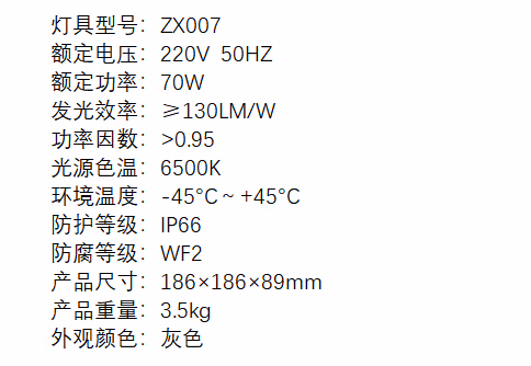 晫安联 ZX007 70W IP66 220V 6500K LED 泛光工作灯 (计价单位:个) 灰色