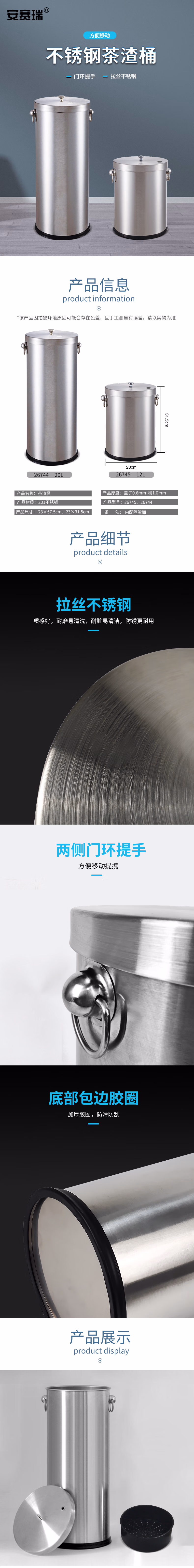 安赛瑞 26745大容量茶水桶排水桶 带盖加厚茶渣过滤垃圾筒 砂钢 12L 不锈钢茶渣桶 (计价单位:个) 本色