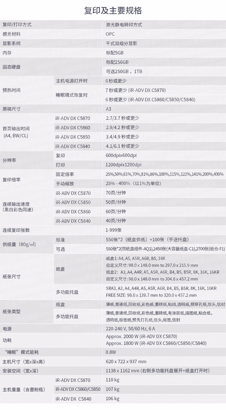 佳能(Canon) iR-ADV C5840 同步输稿器+四纸盒 A3彩色激光数码复合机 (计价单位:台) 白色