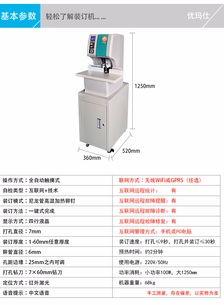 优玛仕(U-MACH) U-NB600H 钻头尺寸φ7*60mm 激光定位 全自动柜式 财务凭证装订机 (计价单位:台) 白色