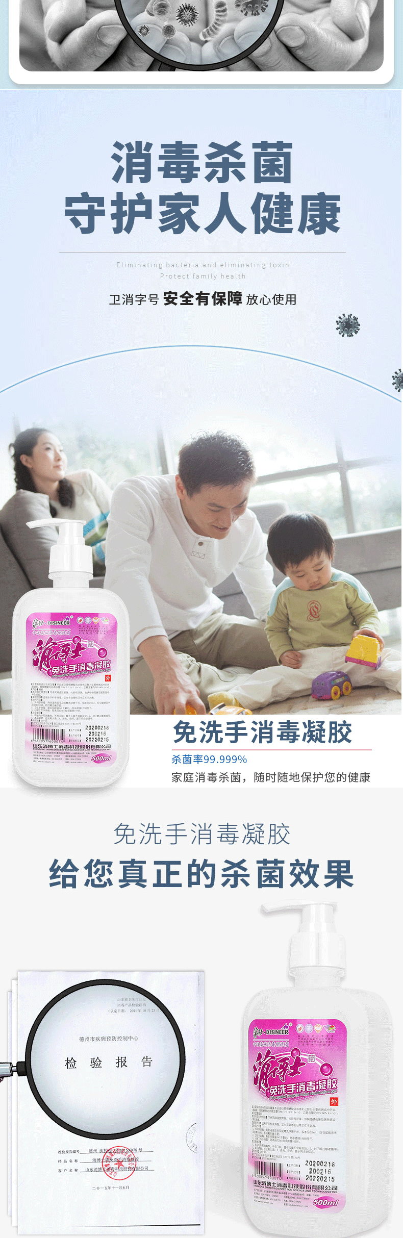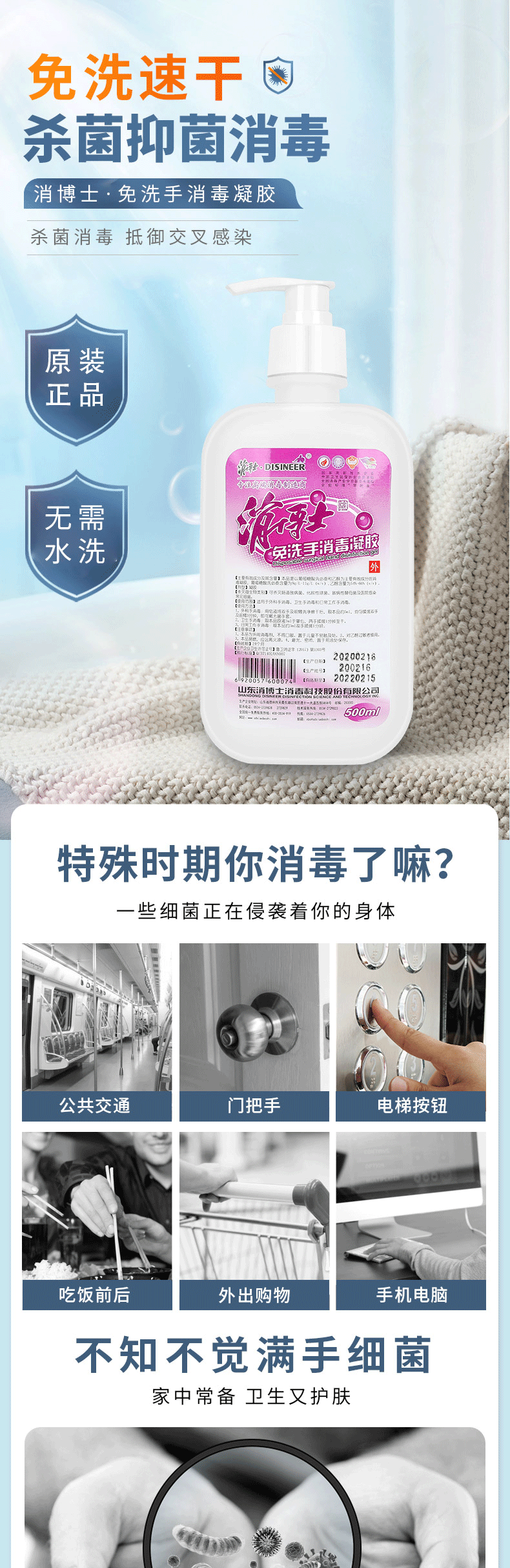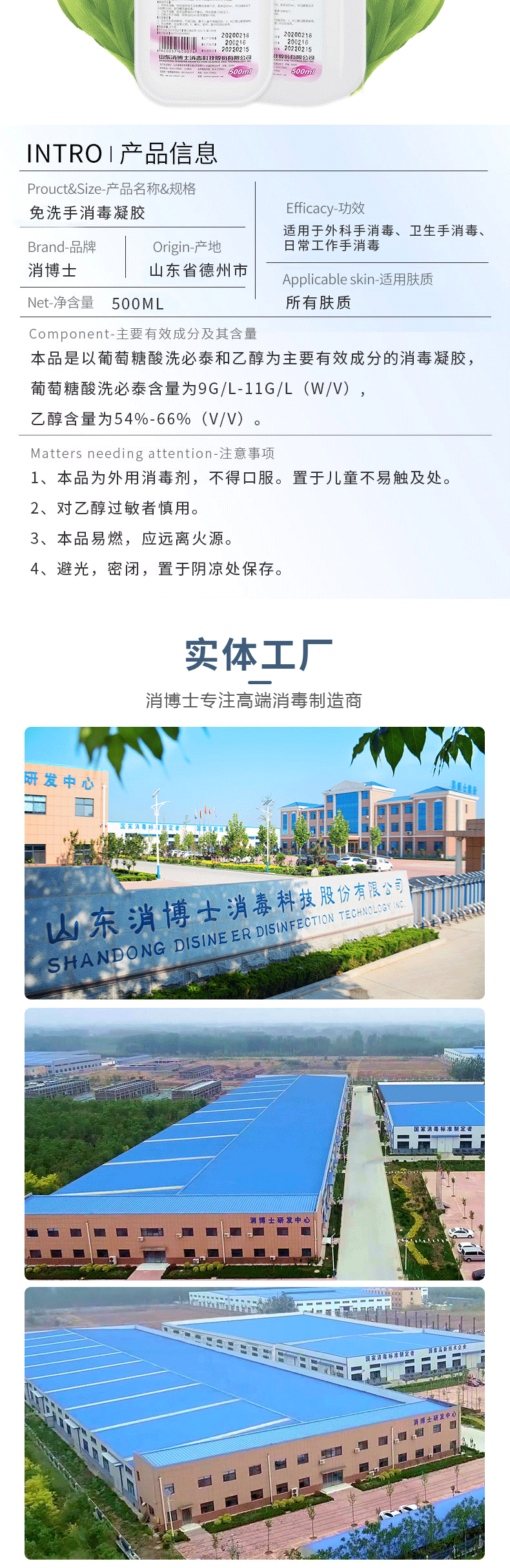 消博士 免洗消毒凝胶 医用外科免洗洗手液 速干抑菌凝露 500ml 免洗手消毒凝胶 (计价单位:瓶)