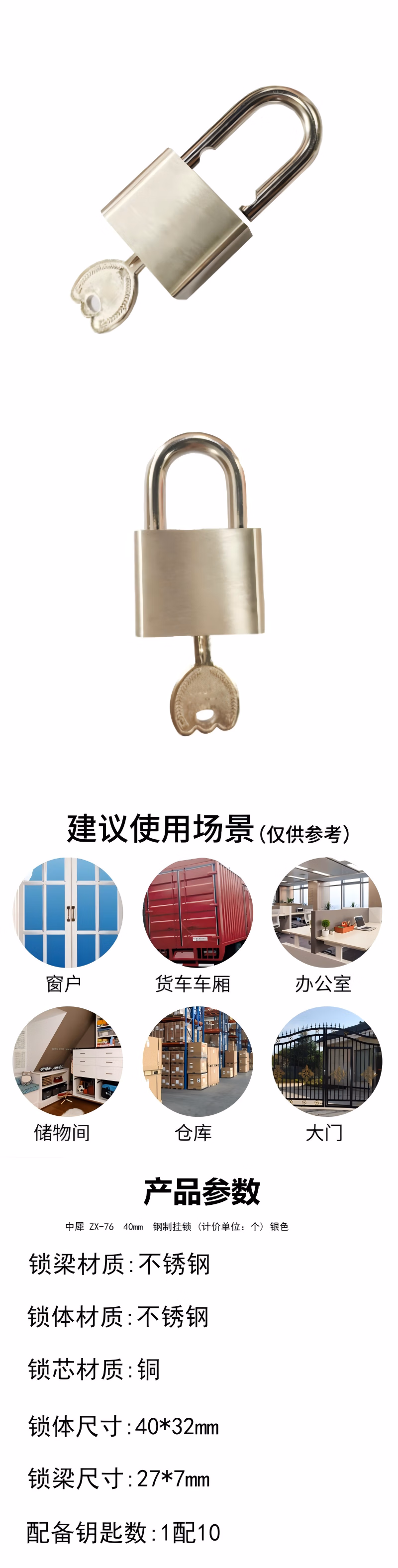 中犀 ZX-76 40mm 钢制 挂锁 (计价单位:个) 银色