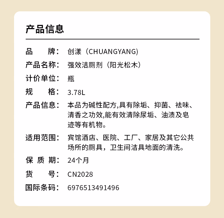 创漾(CHUANGYANG) CN2028 3.78L 洁厕灵 1.00 瓶/桶 (计价单位:桶) 白色