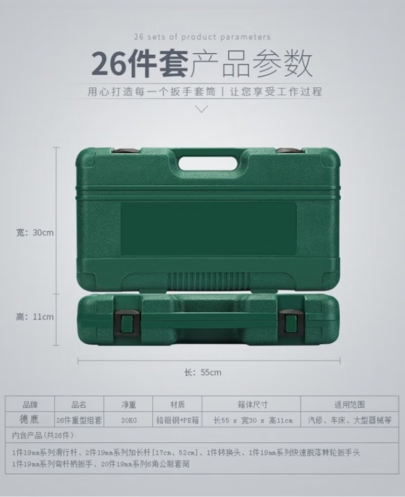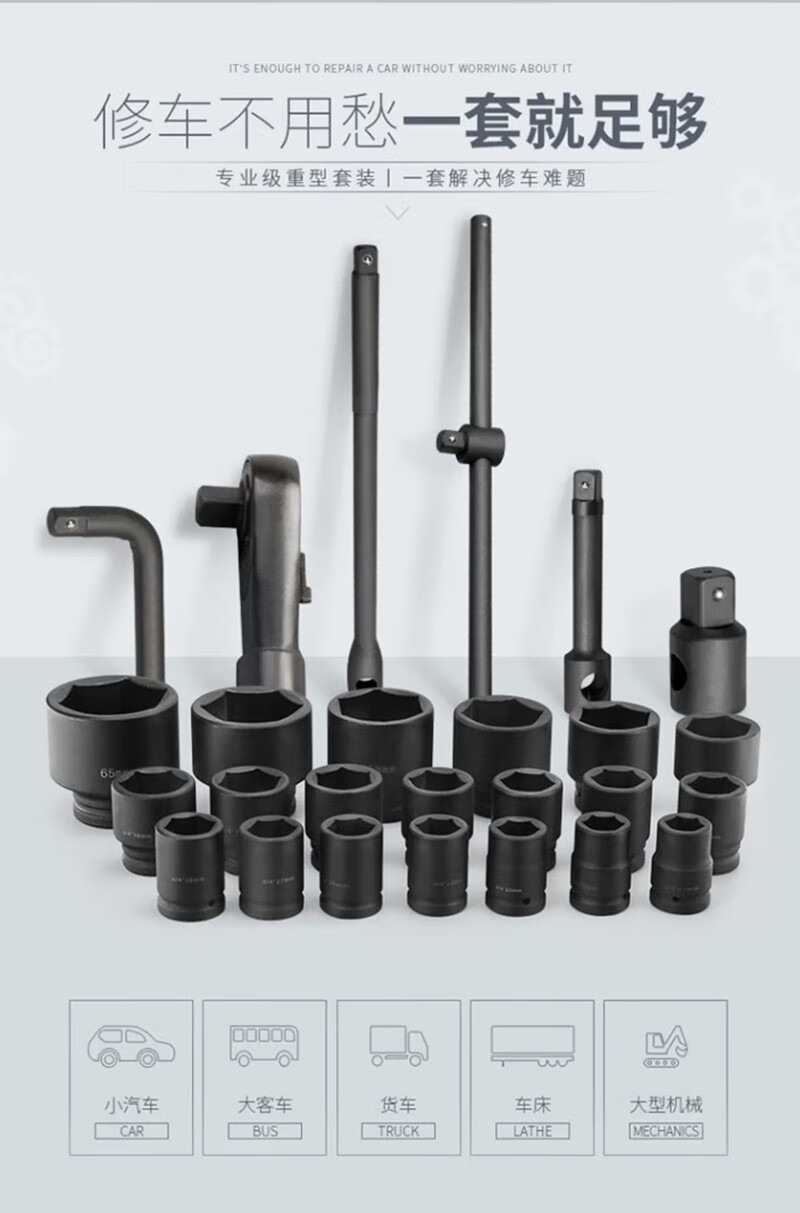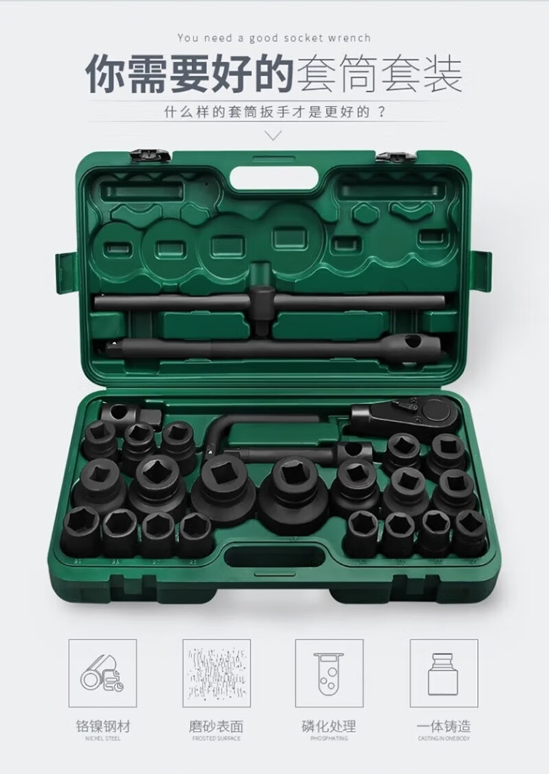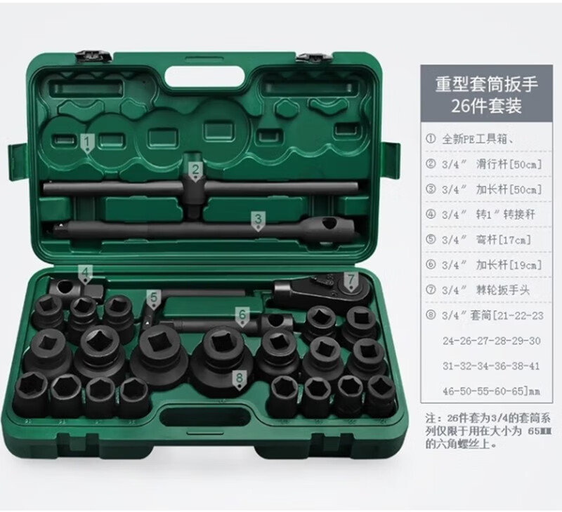晟泰邦 重型26件筒套装 大型组套工具汽修工具套筒扳手21-65mm 重型26件套12角 单位:个