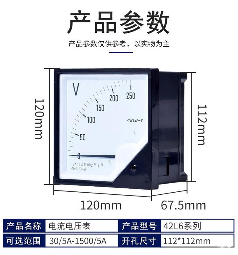 晟泰邦 42L6 -V电压表 指针式表头频率表功率因数表交流机械式 电压表42L6-500V 单位:个
