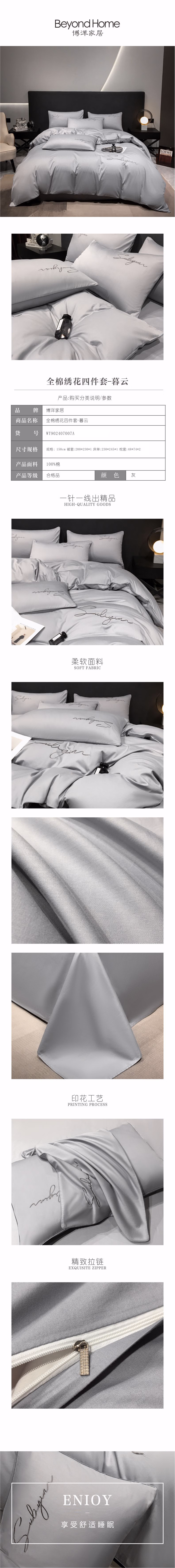 博洋家居(BeyondHome) WT902407007A 200*230 230*245 48*74*2 全棉绣花四件套 床上套件 (计价单位:套) 暮云