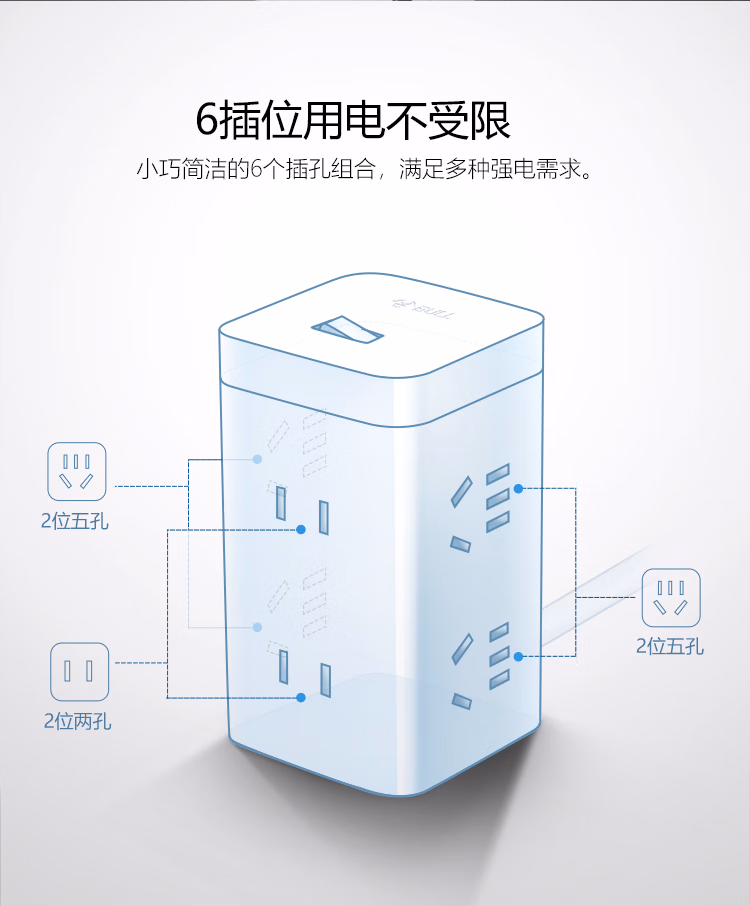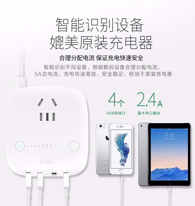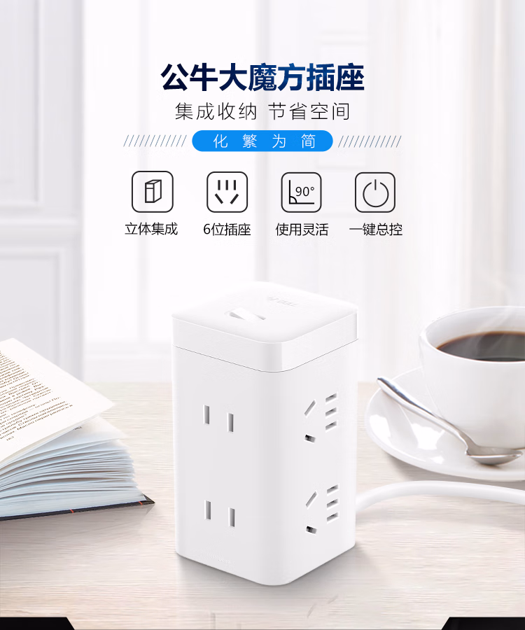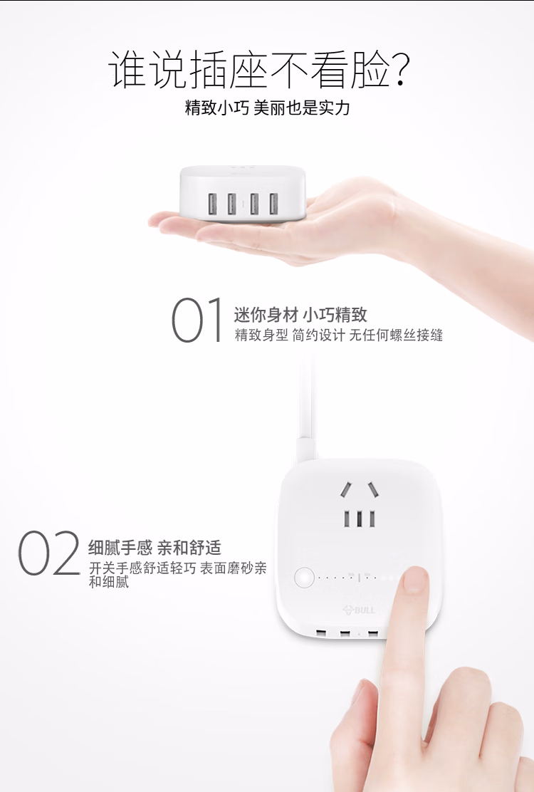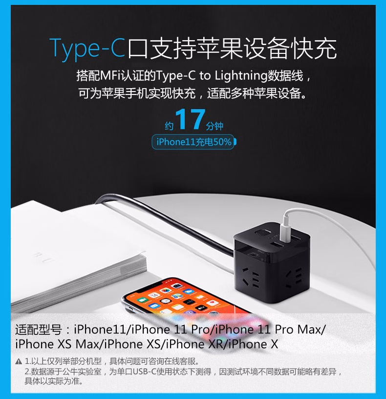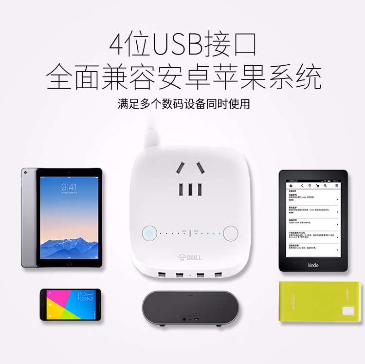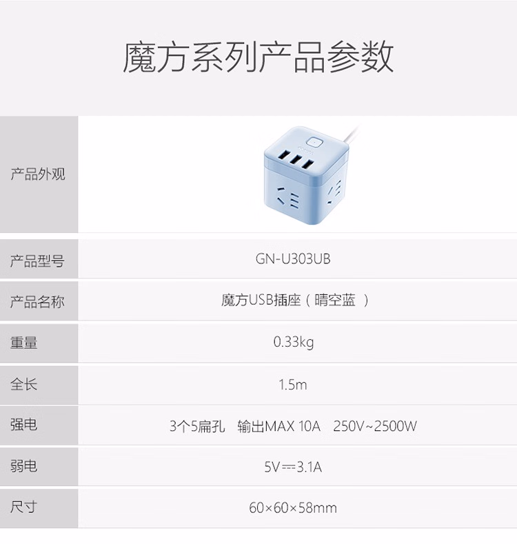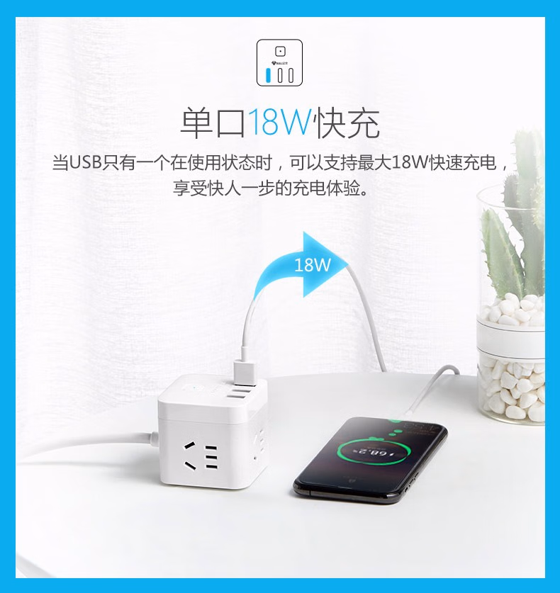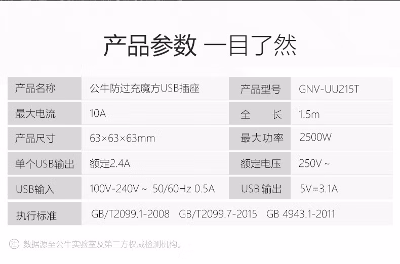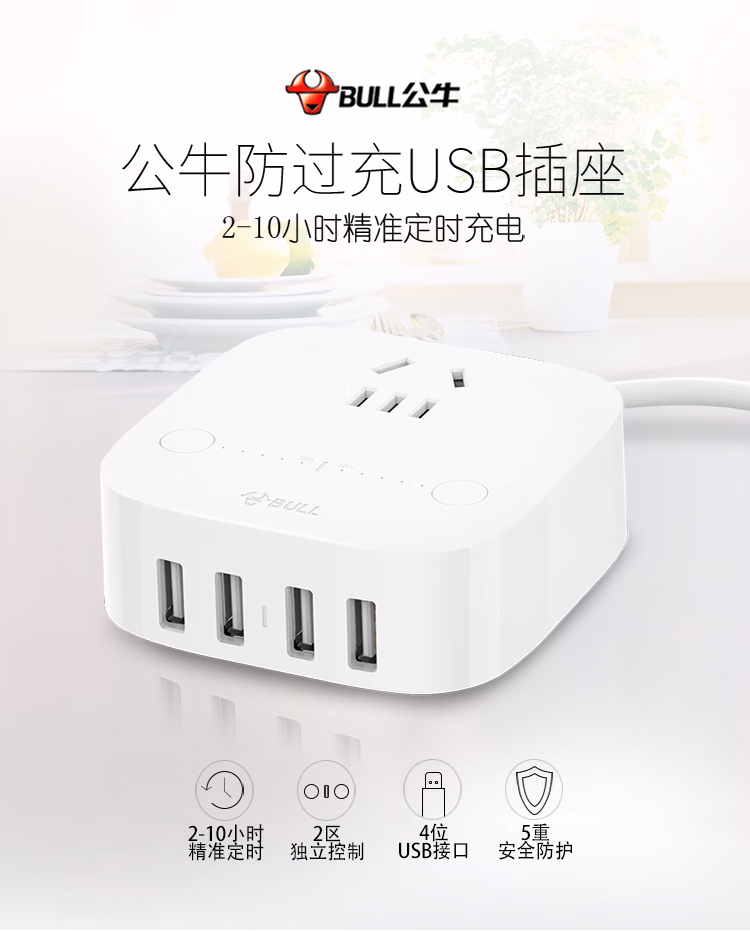 公牛(BULL) GNV-UU2203H 20W快充魔方插座 总控1.5米 插排 (计价单位:个) 黑色