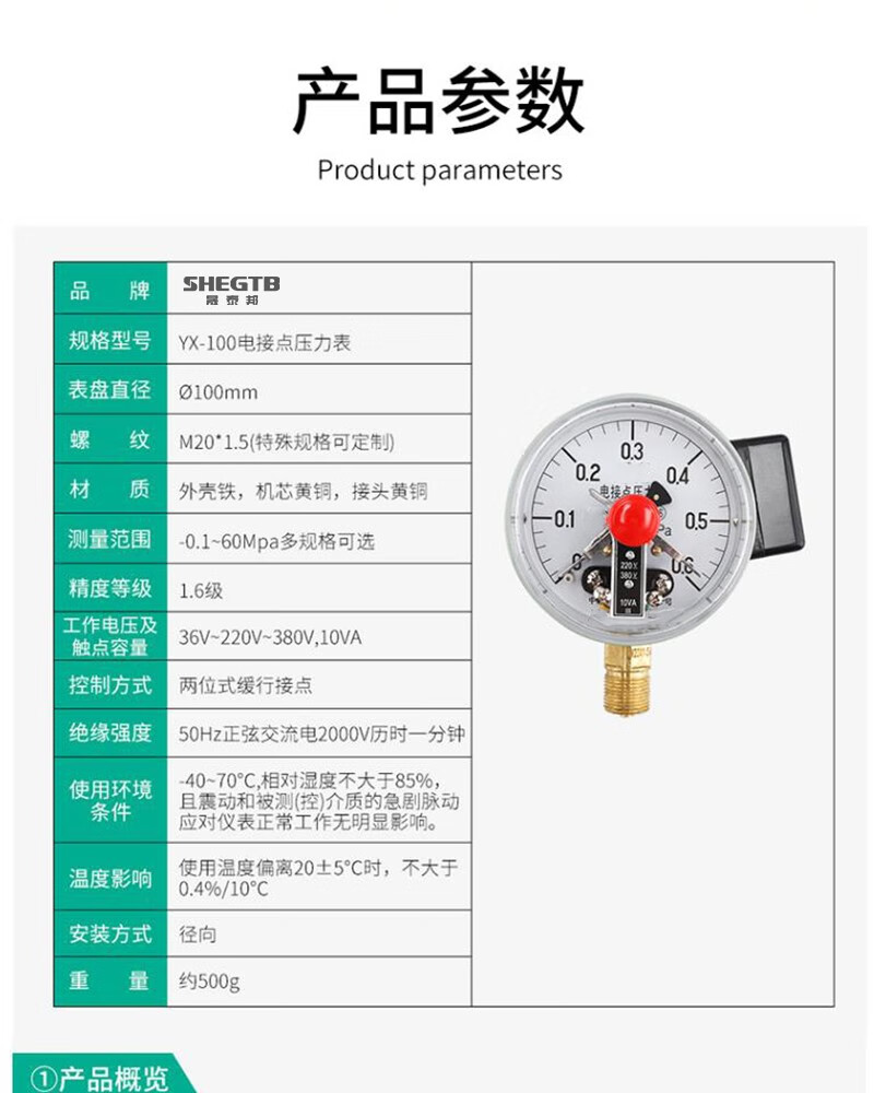 晟泰邦 电接点压力表YX-100 径向上下限报警水压油压气压液压自动控制压力表0-4Mpa 单位:个