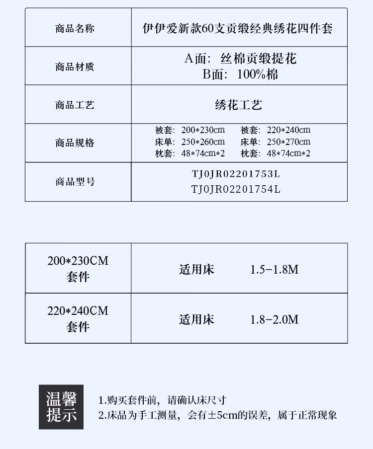 伊伊爱 TJ0JR02201753L /200*230cm 贡缎60S绣花四件套 (计价单位:套) 梦娜塔紫金