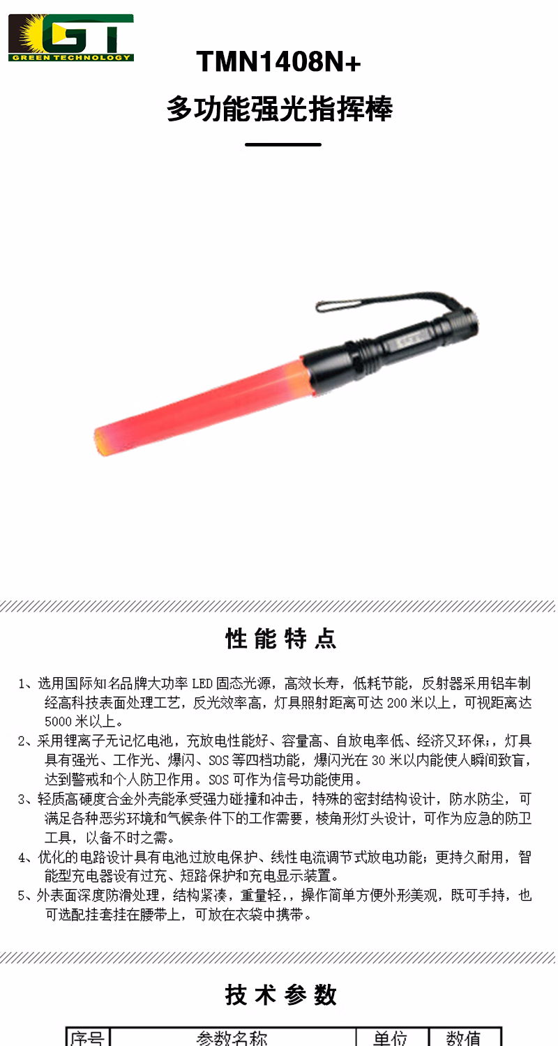• 商品名称:吉特(GT) 多功能强光指挥棒TMN1408N+ ,3W,IP65,电压:3.7V 主机