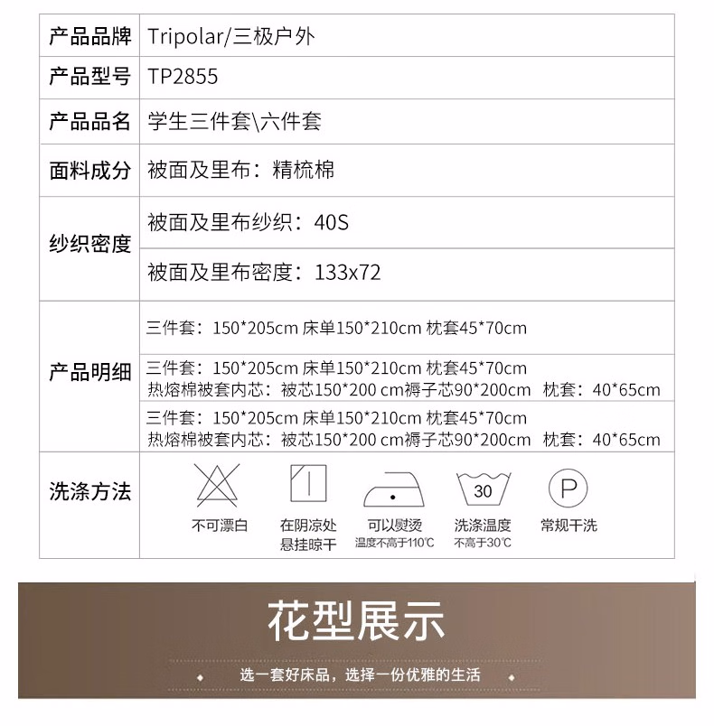 三极户外(Tri-Polar) TP2855 150*205cm 棉花被芯+40纱织全棉被罩 蓝白格 被子 (计价单位:件) 蓝白格