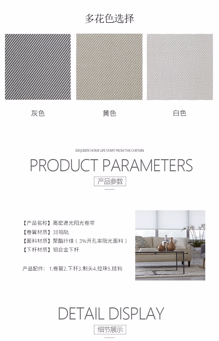 伊伊爱 CL0LJ02000051 3*开孔遮光防水 含配件 卷帘 1.00 米/平方米 (计价单位:平方米) 灰色