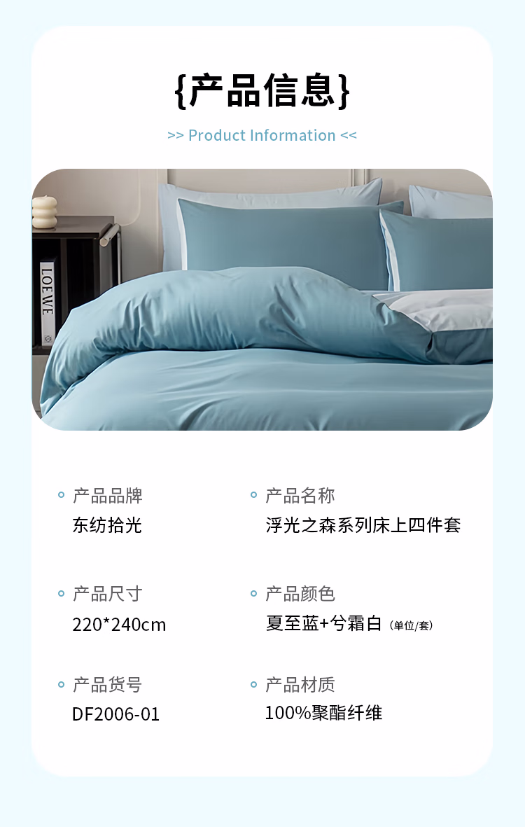 东纺拾光 DF2006-01 220*240cm 床上套件 (计价单位:套) 夏至蓝+兮霜白