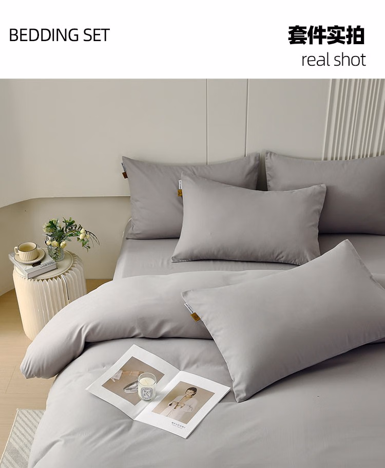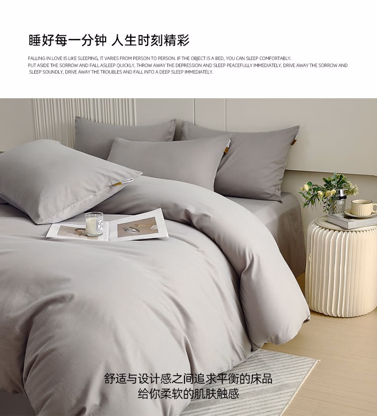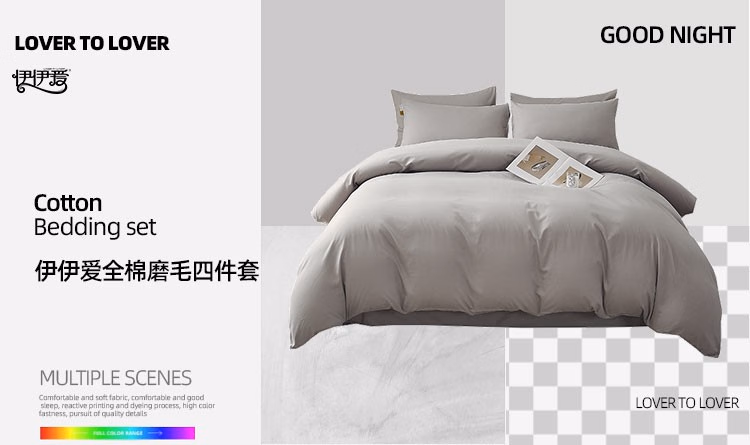 伊伊爱 TJ0KL02302072 200*230cm 全棉磨毛四件套 床上套件 (计价单位:套) 浅灰色