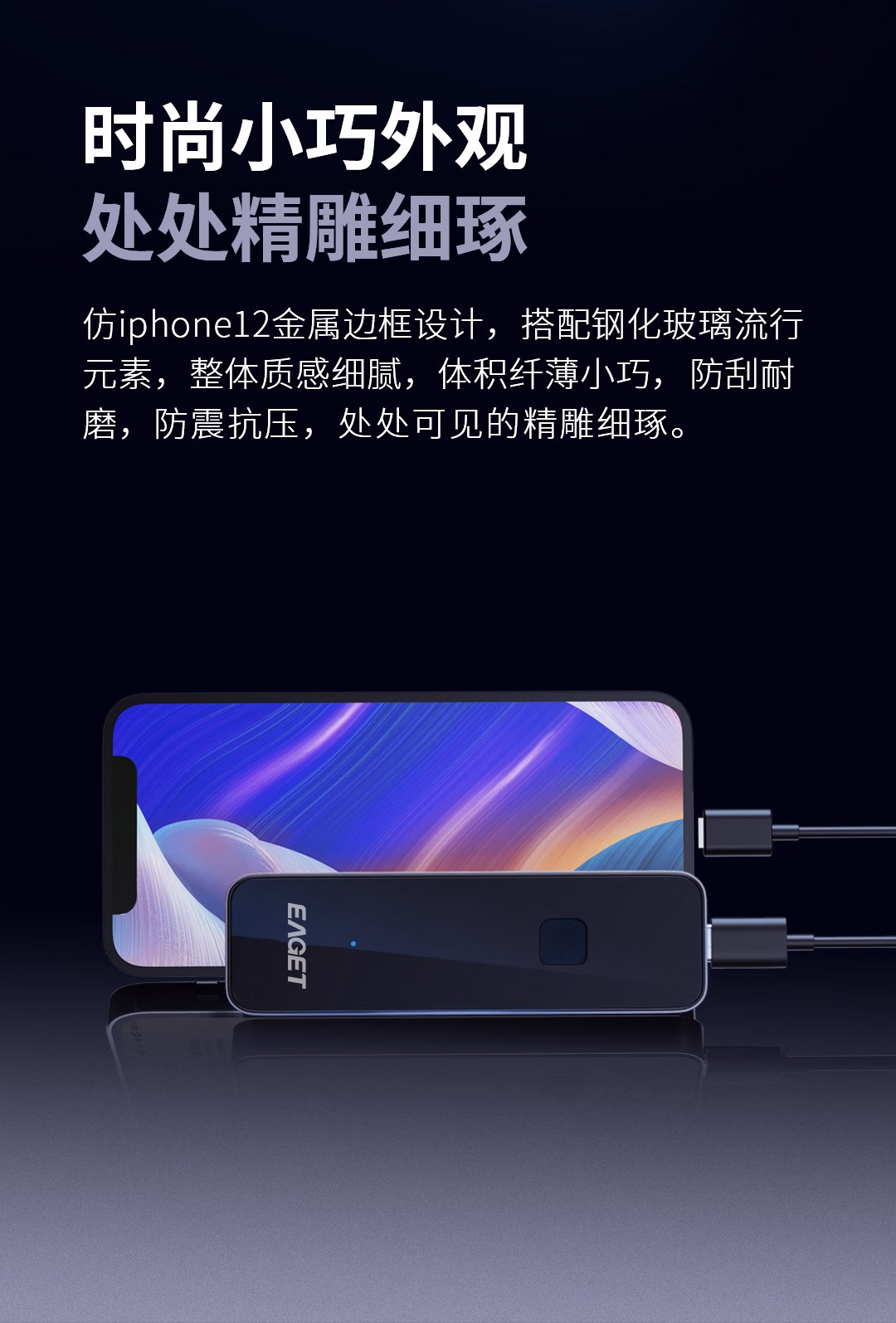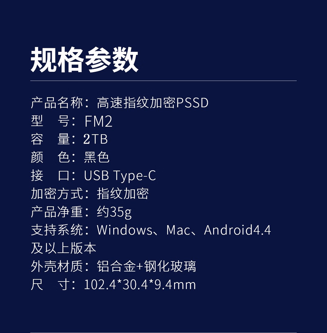 忆捷(EAGET) FM2-2T 102.4*30.4*9.4mm35gType-c USB 3.2 指纹识别 SM4国密算法 移动存储硬盘 (计价单位:个) 黑色