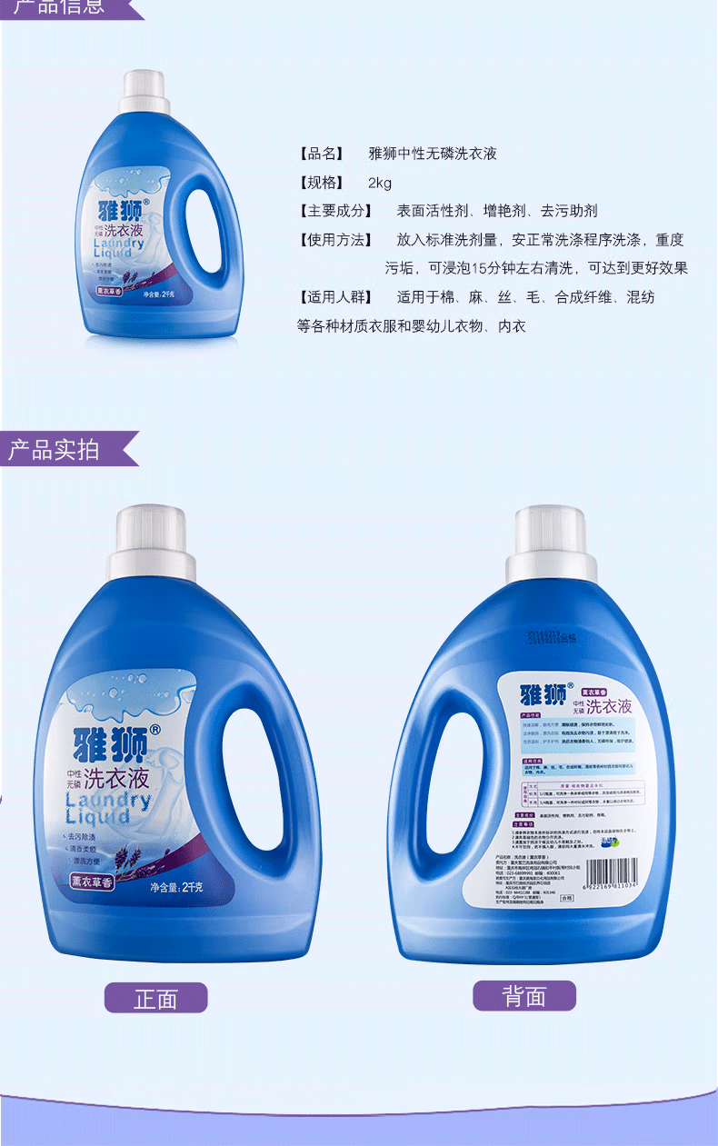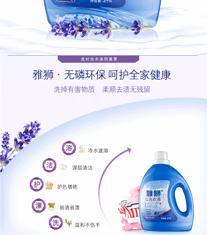 雅狮 薰衣草香 2kg*2 洗衣液双瓶装 2.00 瓶/组 (计价单位:组)