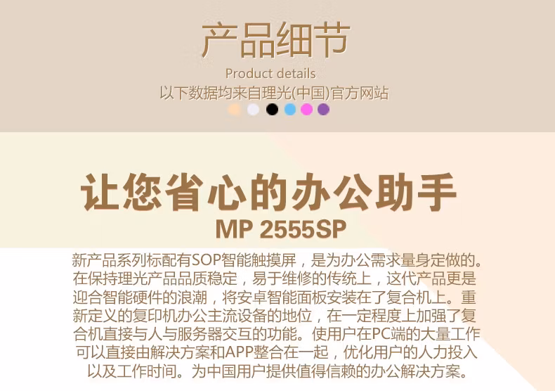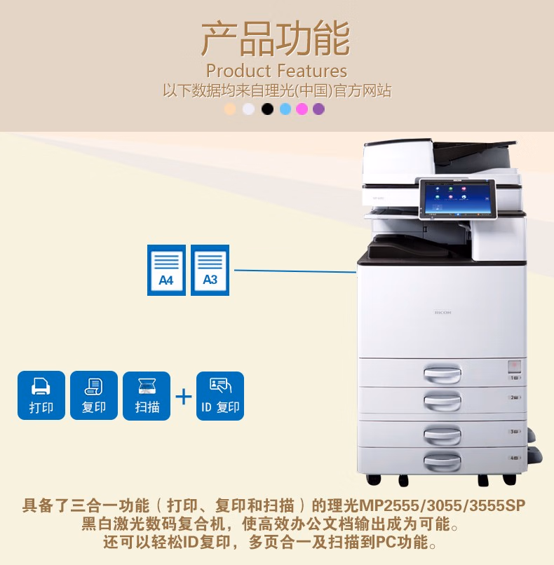 理光(Ricoh) MP2555SP 双纸盒+双面输稿器 A3黑白激光复合机 (计价单位:台) 白色