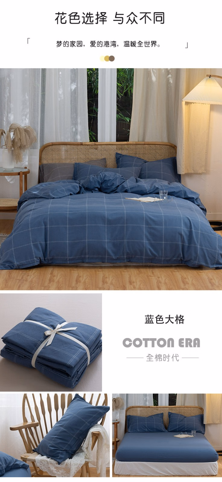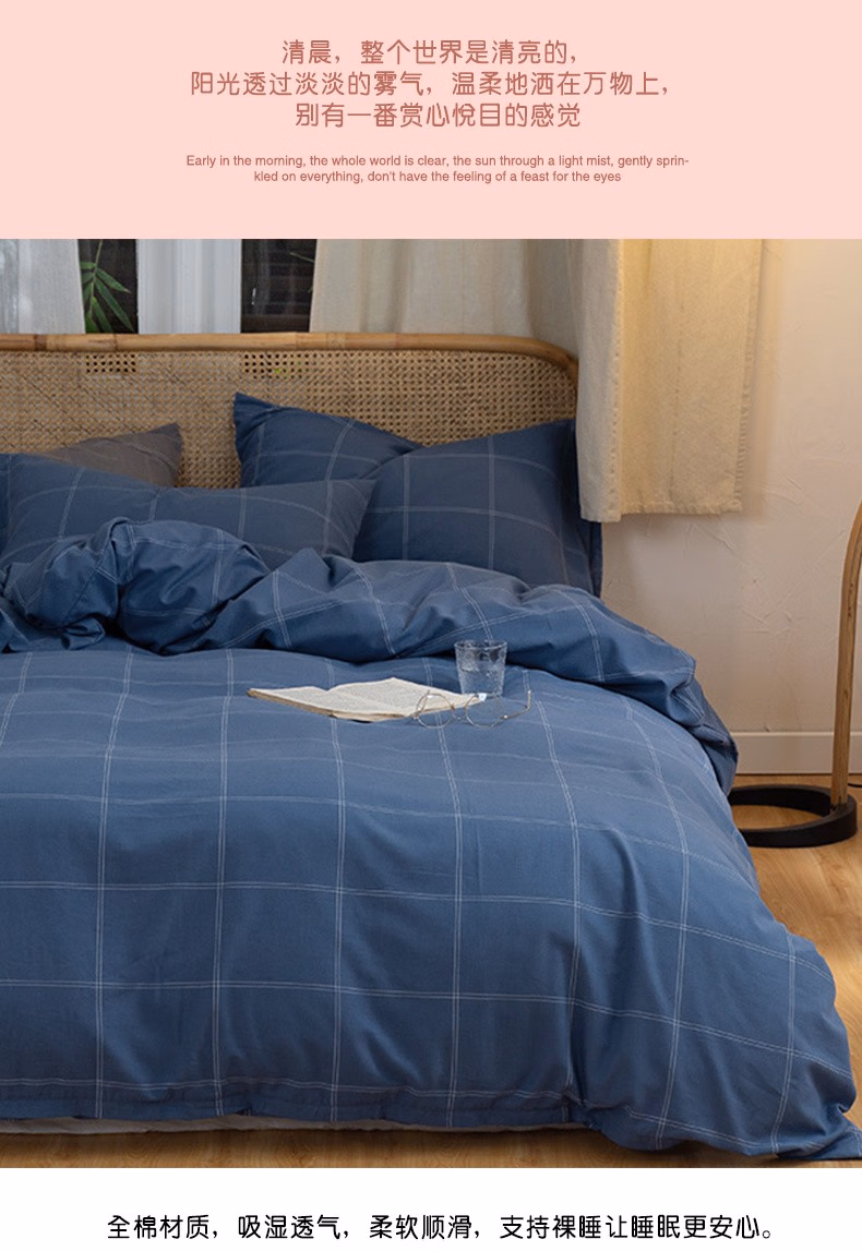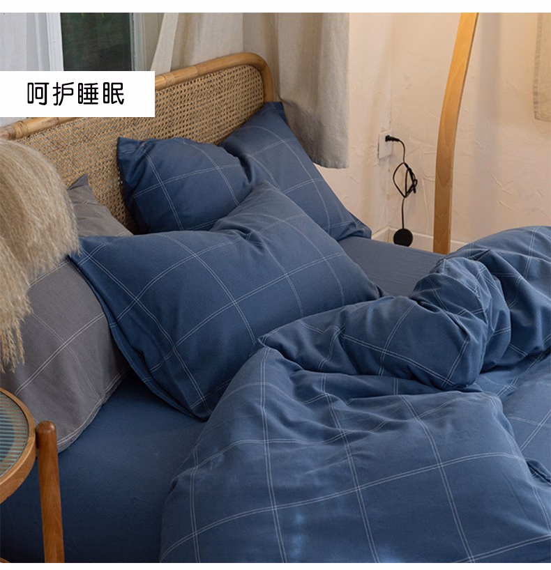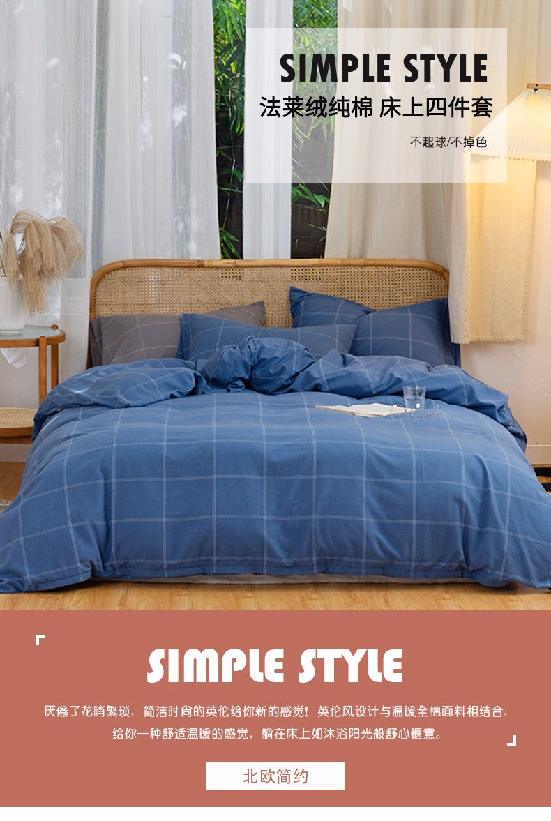 婵思 TJGSXM2000545 220*240cm 法莱绒纯棉 床上四件套 (计价单位:套) 蓝色大格