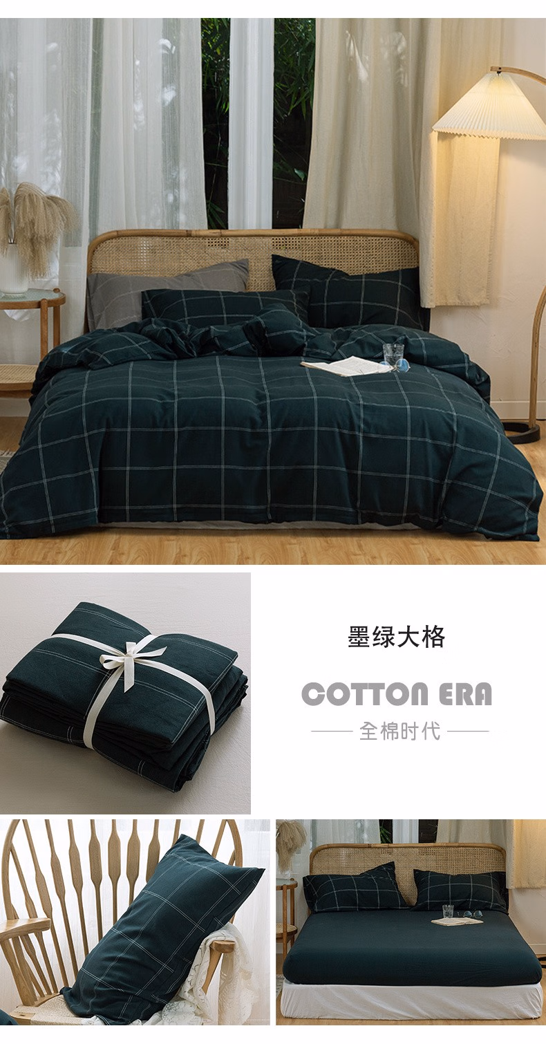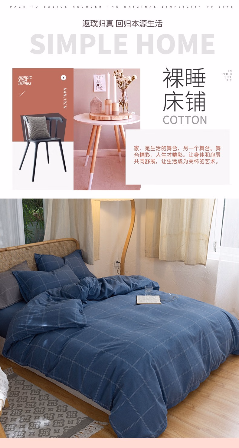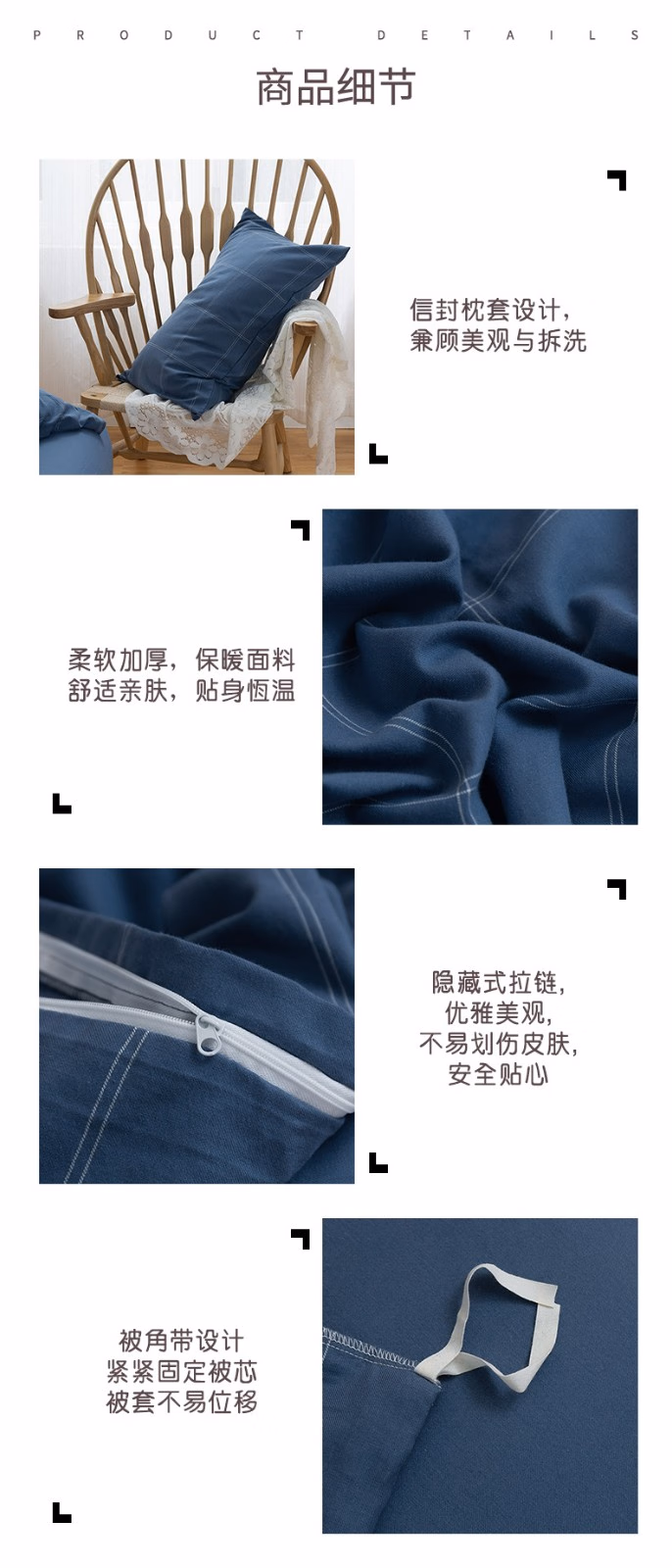 婵思 TJGSXM2000545 220*240cm 法莱绒纯棉 床上四件套 (计价单位:套) 蓝色大格