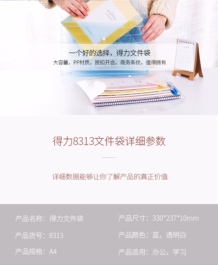 得力(deli) 8313 文件袋 (计价单位:个) 透明蓝