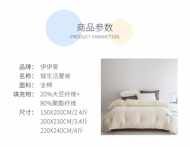 伊伊爱 BZ0BZF2100889 220*240cm猫生活 猫生活夏被 1.00 件/条 (计价单位:条) 白色