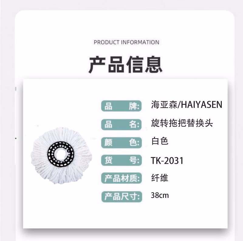 海亚森 TK-2031 38cm 旋转拖把替换头 1.00 把/个 (计价单位:个) 白色
