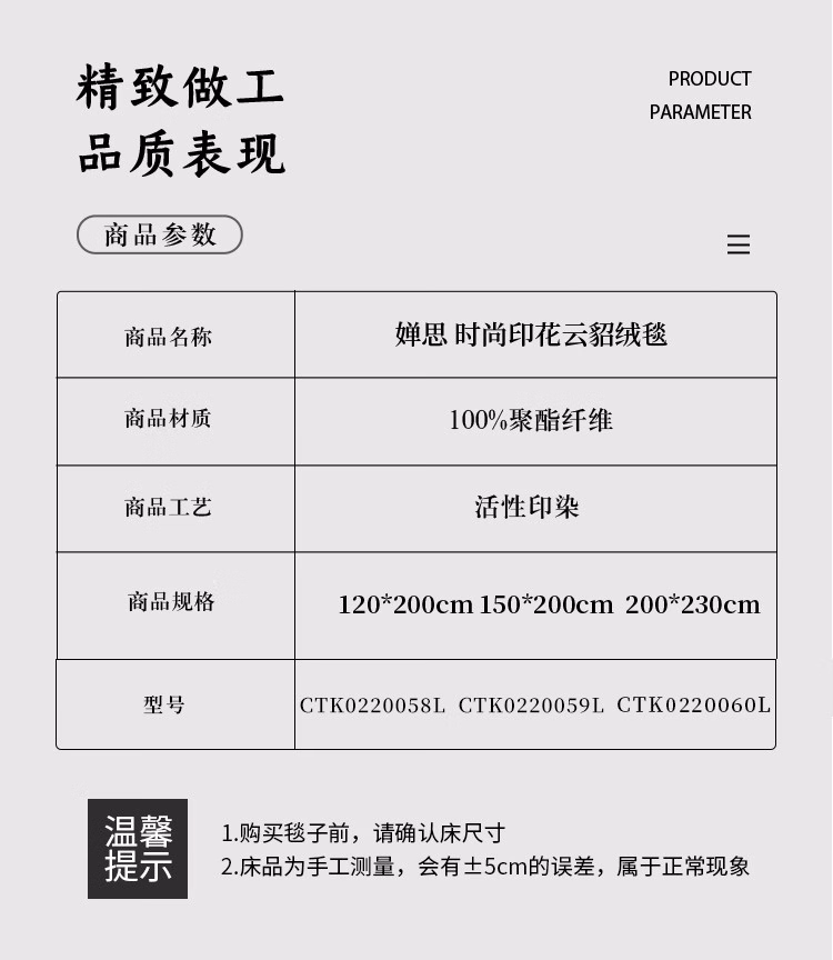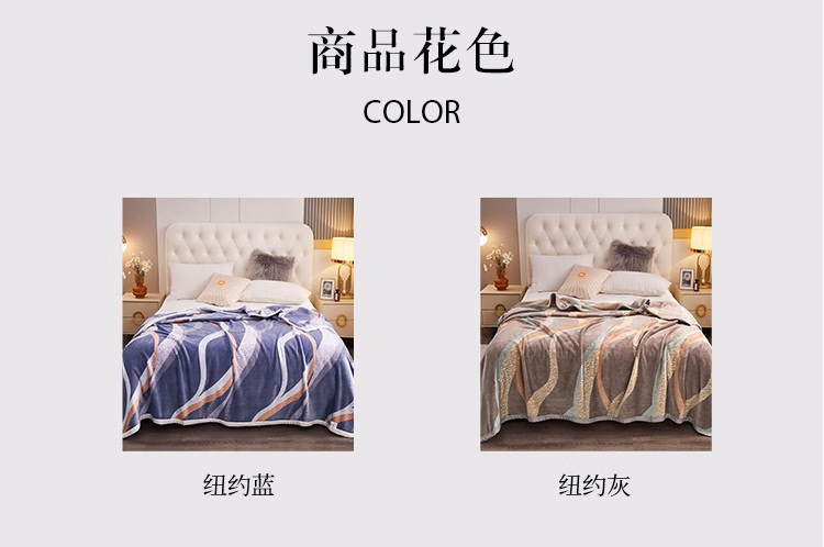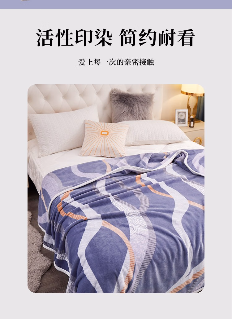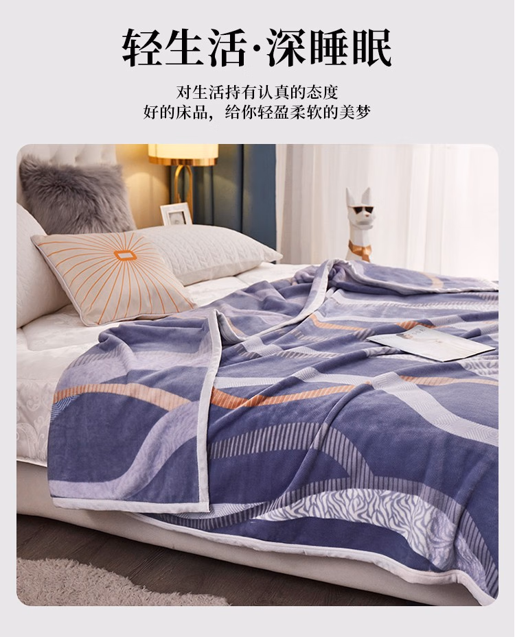婵思 CTK0220059L 150*200cm 时尚 印花 云貂绒毯 1.00 件/条 (计价单位:条) 纽约蓝