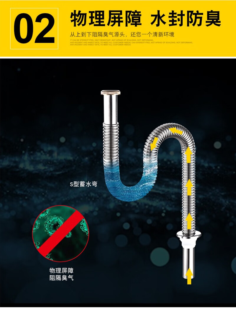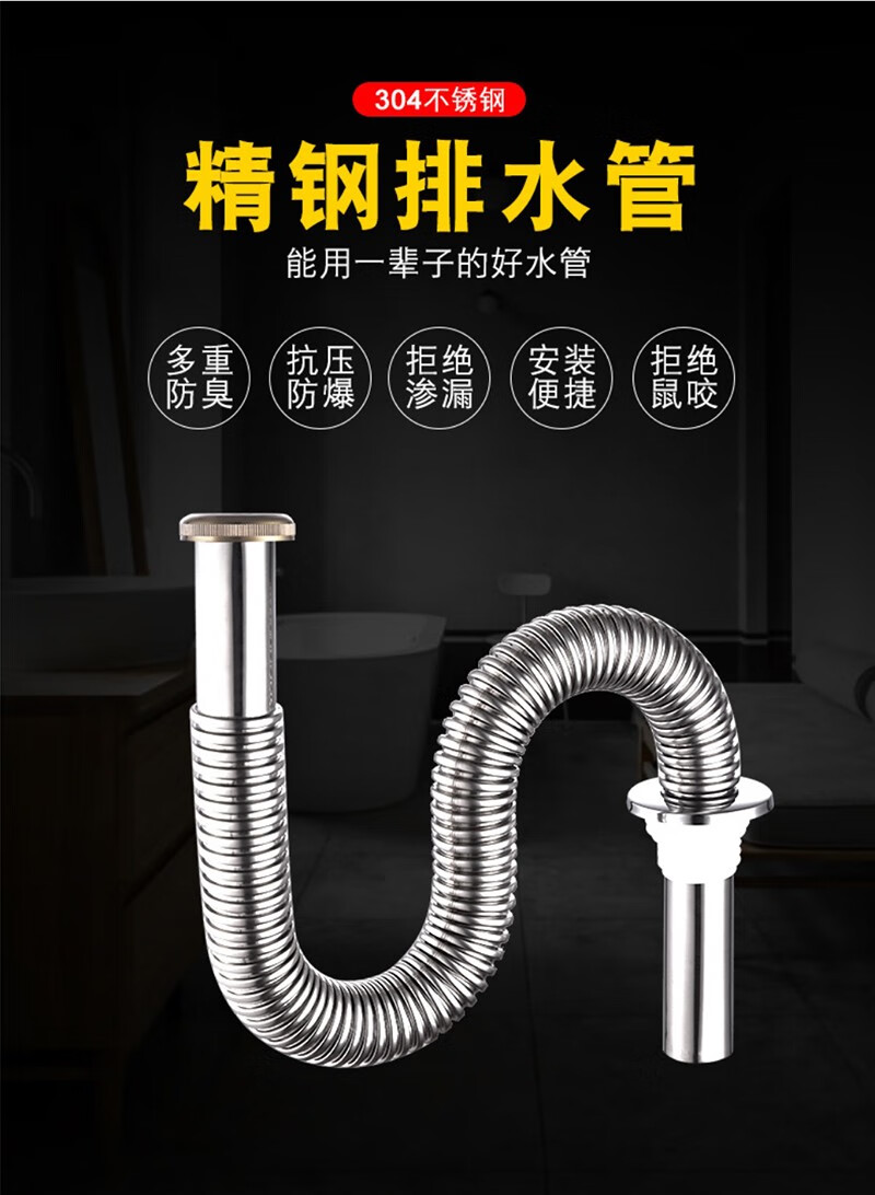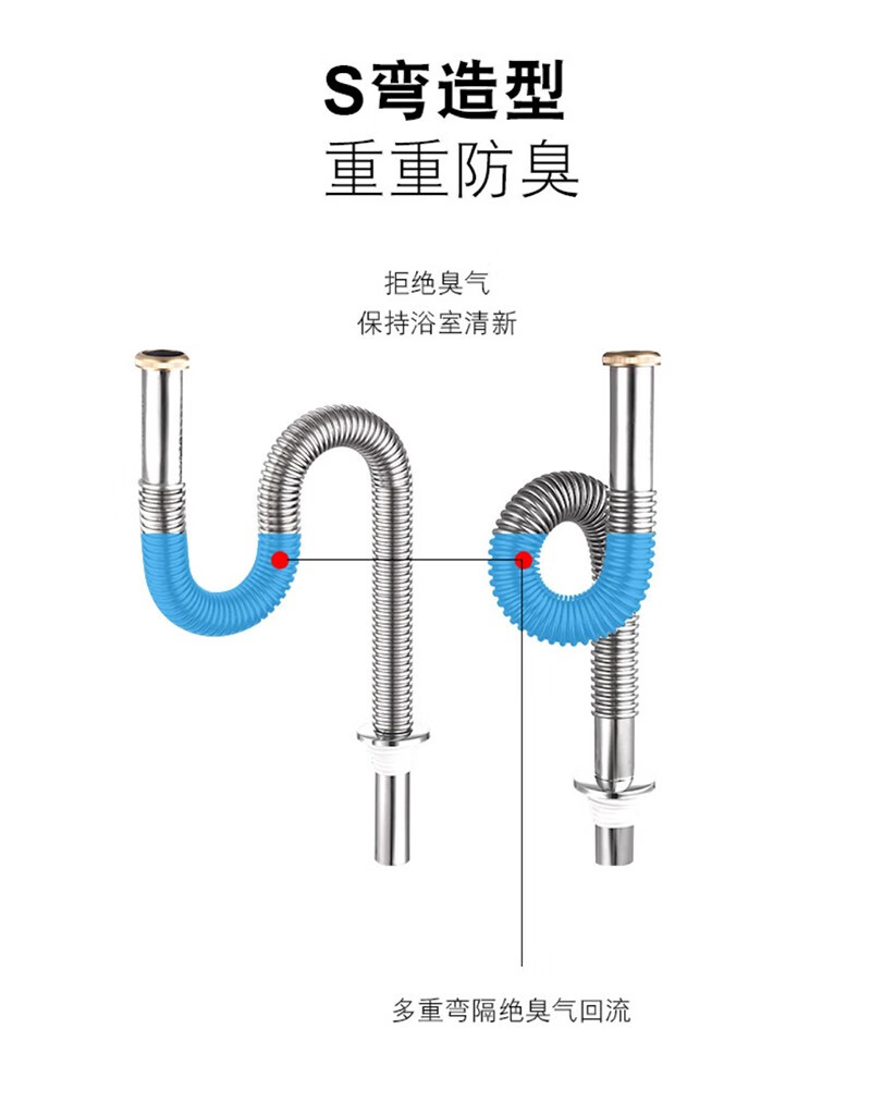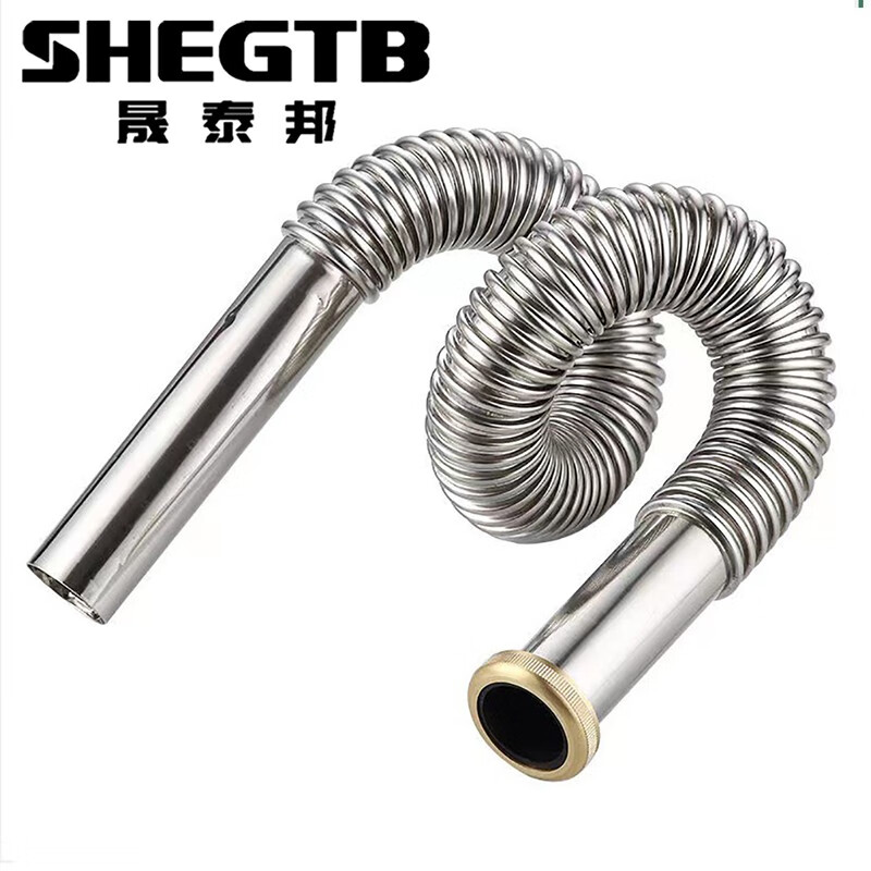 晟泰邦 304不锈钢下水管水槽面盆排水管加厚防反水溢水钢丝软管 内径32mm 长80cm 单位:根