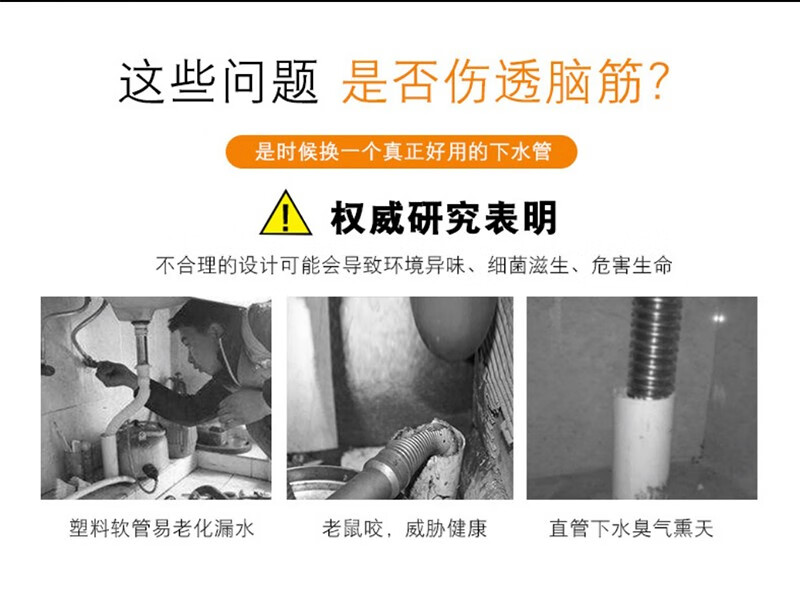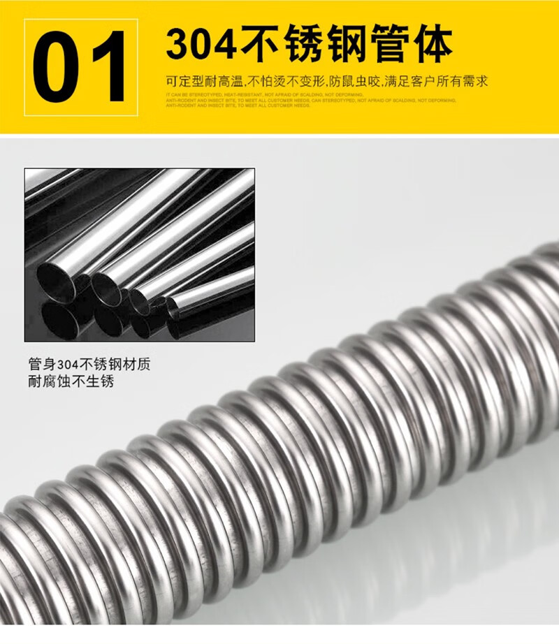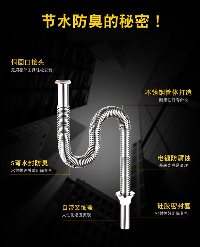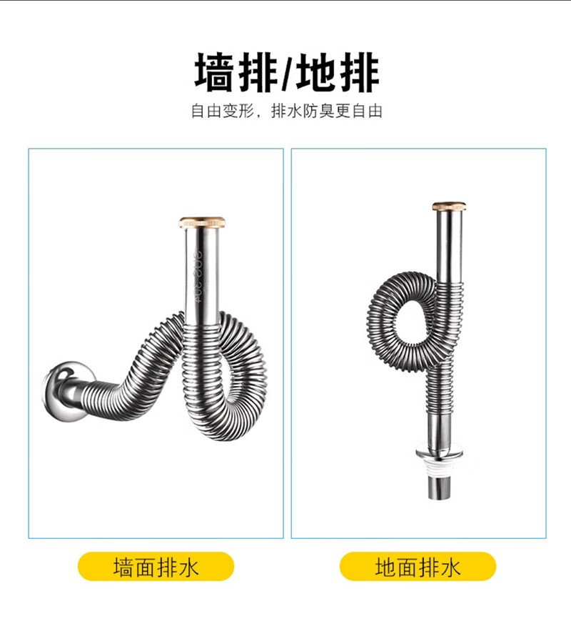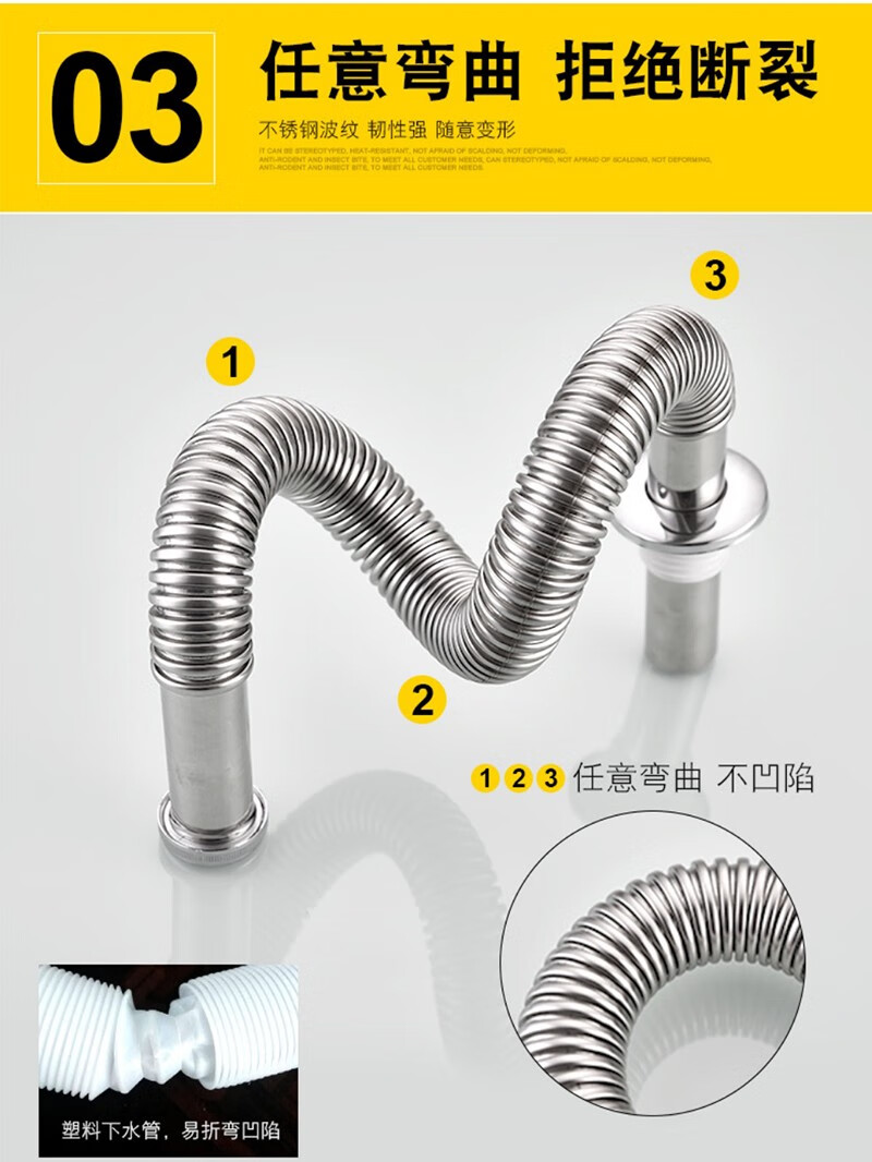 晟泰邦 304不锈钢下水管水槽面盆排水管加厚防反水溢水钢丝软管 内径32mm 长80cm 单位:根