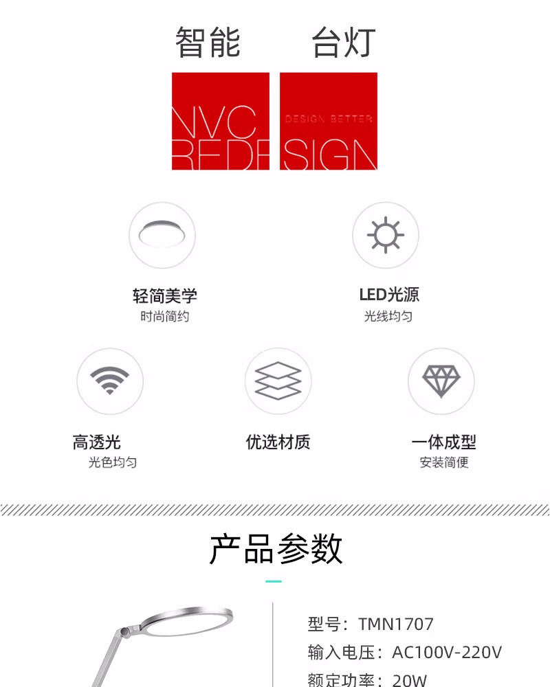 • 商品名称:吉特(GT) 智能台灯 TMN1707 20W IP20 AC100-220V 主机