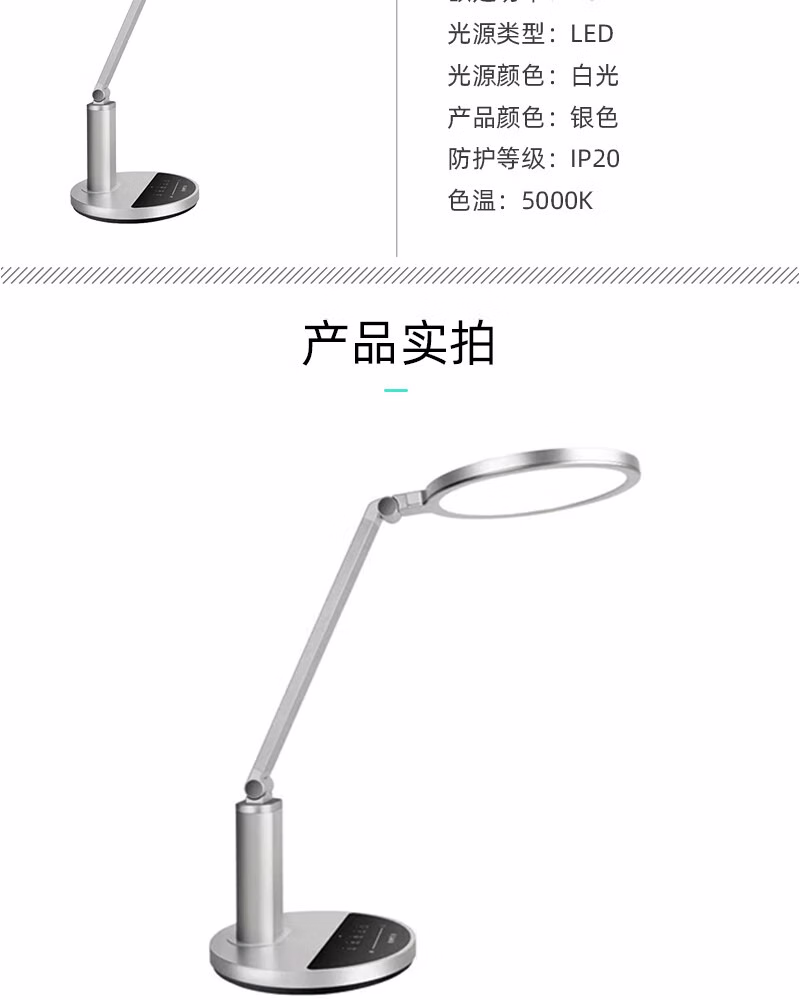吉特(GT) TMN1707 20W IP20 AC100-220V 5000K 白光 LED 智能护眼台灯 (计价单位:台) 银色
