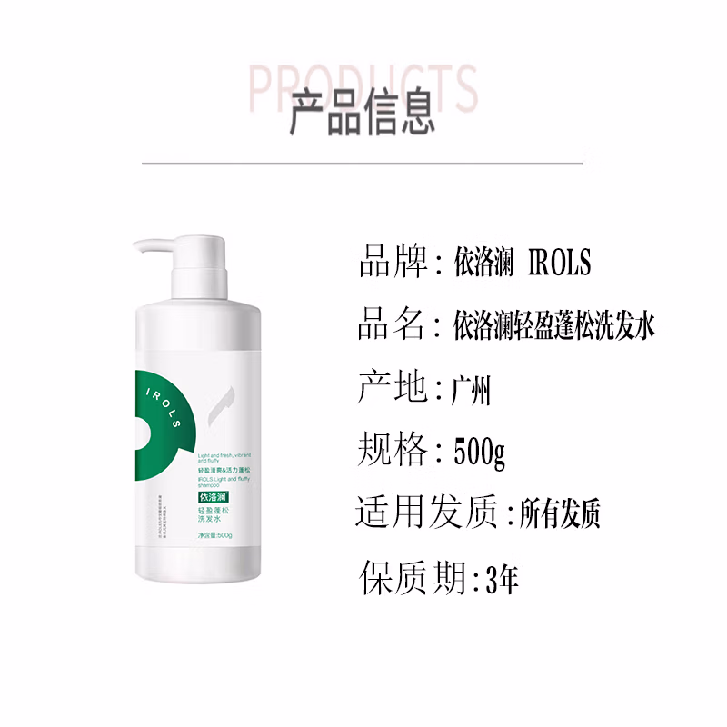 依洛澜 500g 适用所有发质 轻盈蓬松 洗发水 (计价单位:瓶) 白色