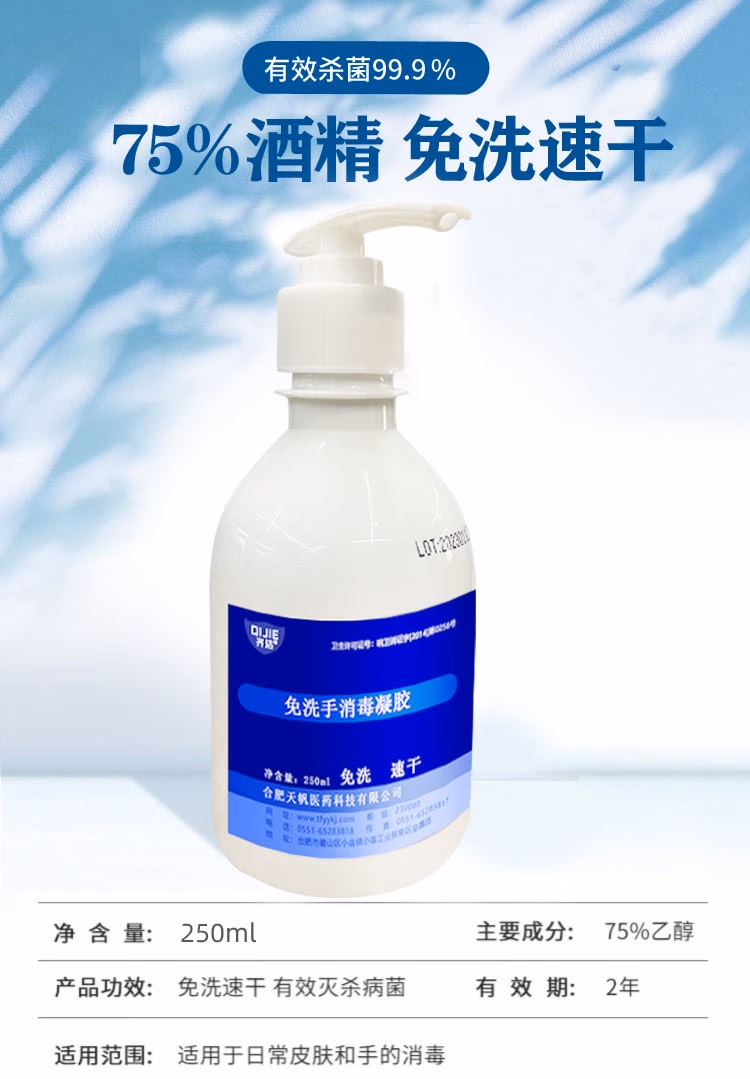 齐洁 250ml 75*酒精 免洗手消毒凝胶(粮食酒精) (计价单位:瓶) 白色