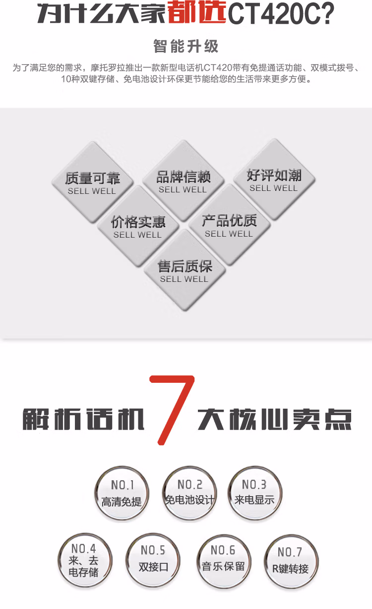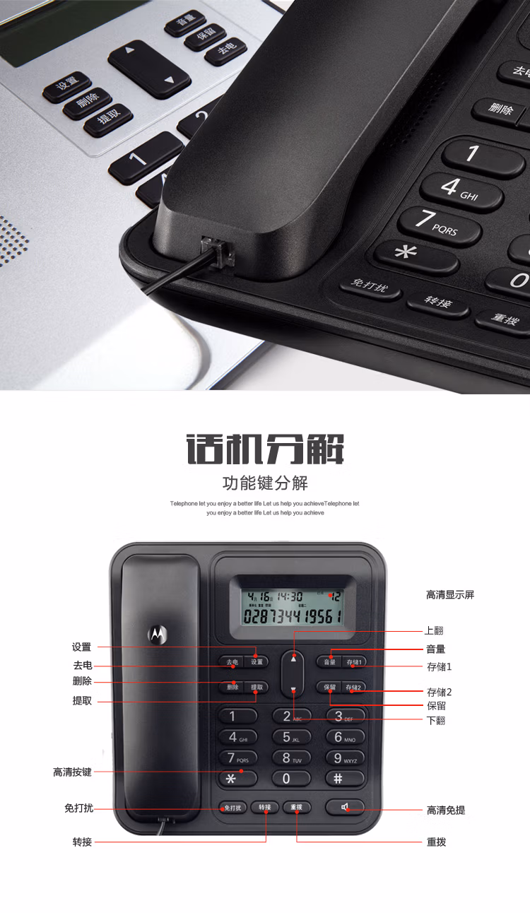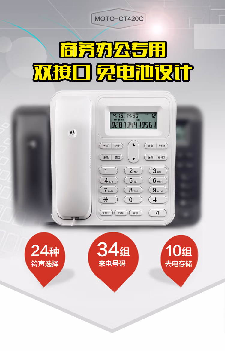 摩托罗拉(Motorola) CT420C 免电池 免提 双接口 电话机 (计价单位:台) 黑色