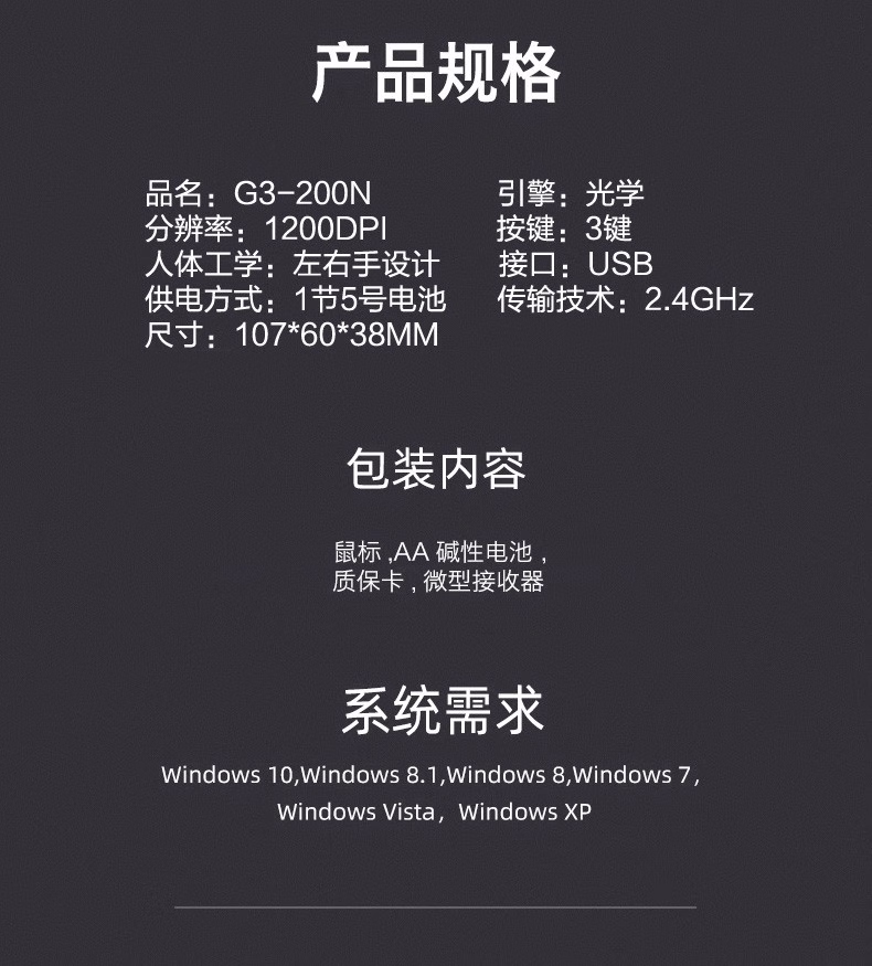 双飞燕(A4TECH) G3-200N 无线鼠标 (计价单位:个) 黑色
