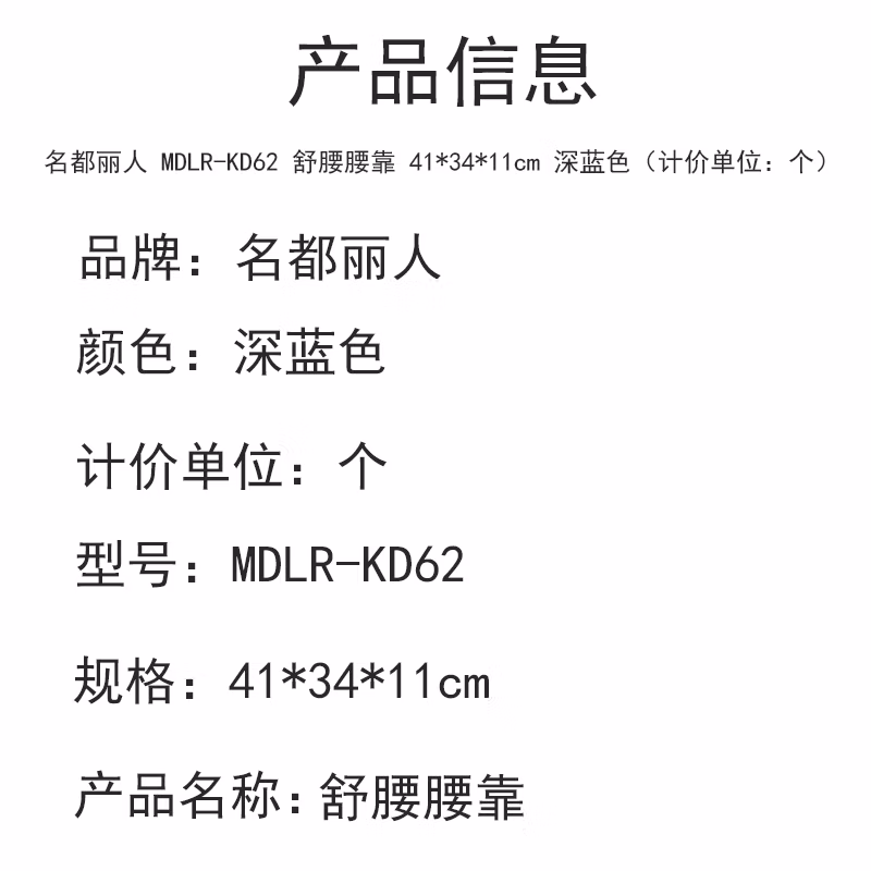 名都丽人 MDLR-KD62 舒腰腰靠 41*34*11cm 靠垫 (计价单位:件) 深蓝色