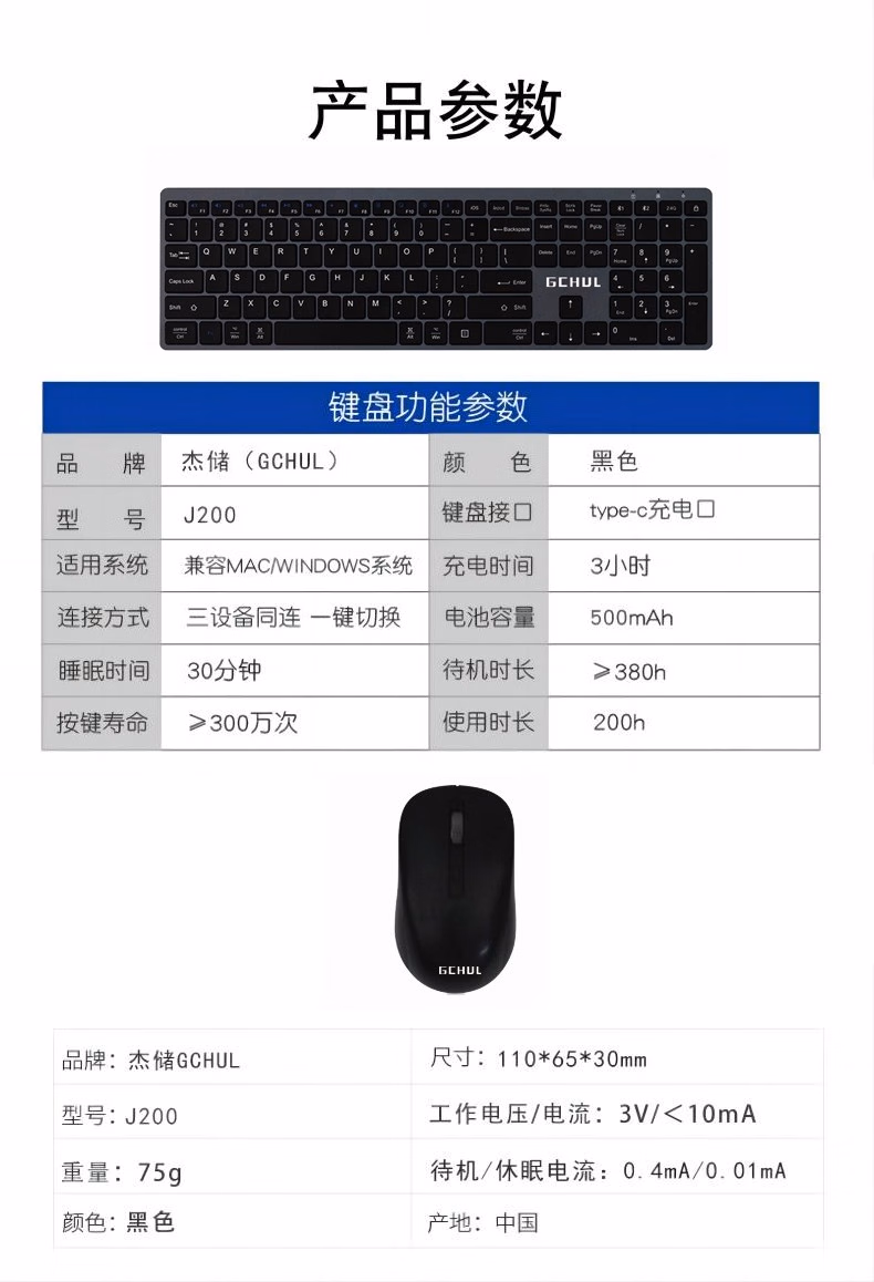 杰储(GCHUL) J200 鼠标加无线静音办公键盘 键鼠套装 键盘 (计价单位:个) 黑色
