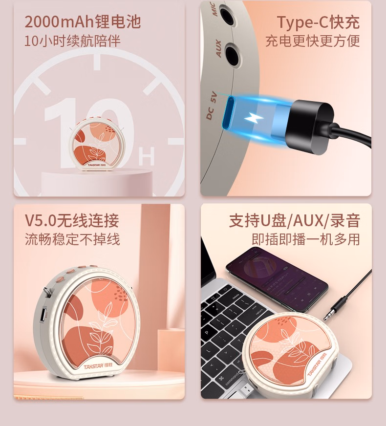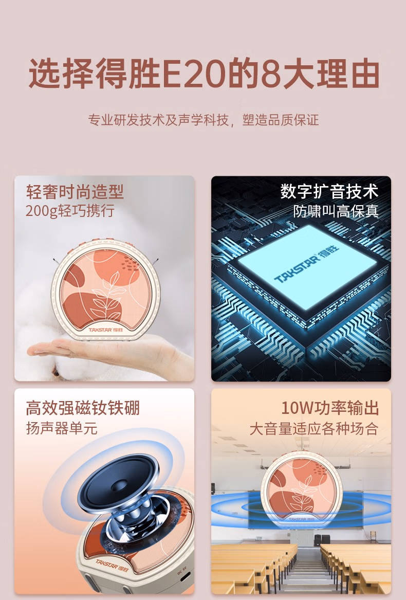 得胜(TAKSTAR) 便携式E220 数字扩音器 1.00 台/套 (计价单位:套) 白色