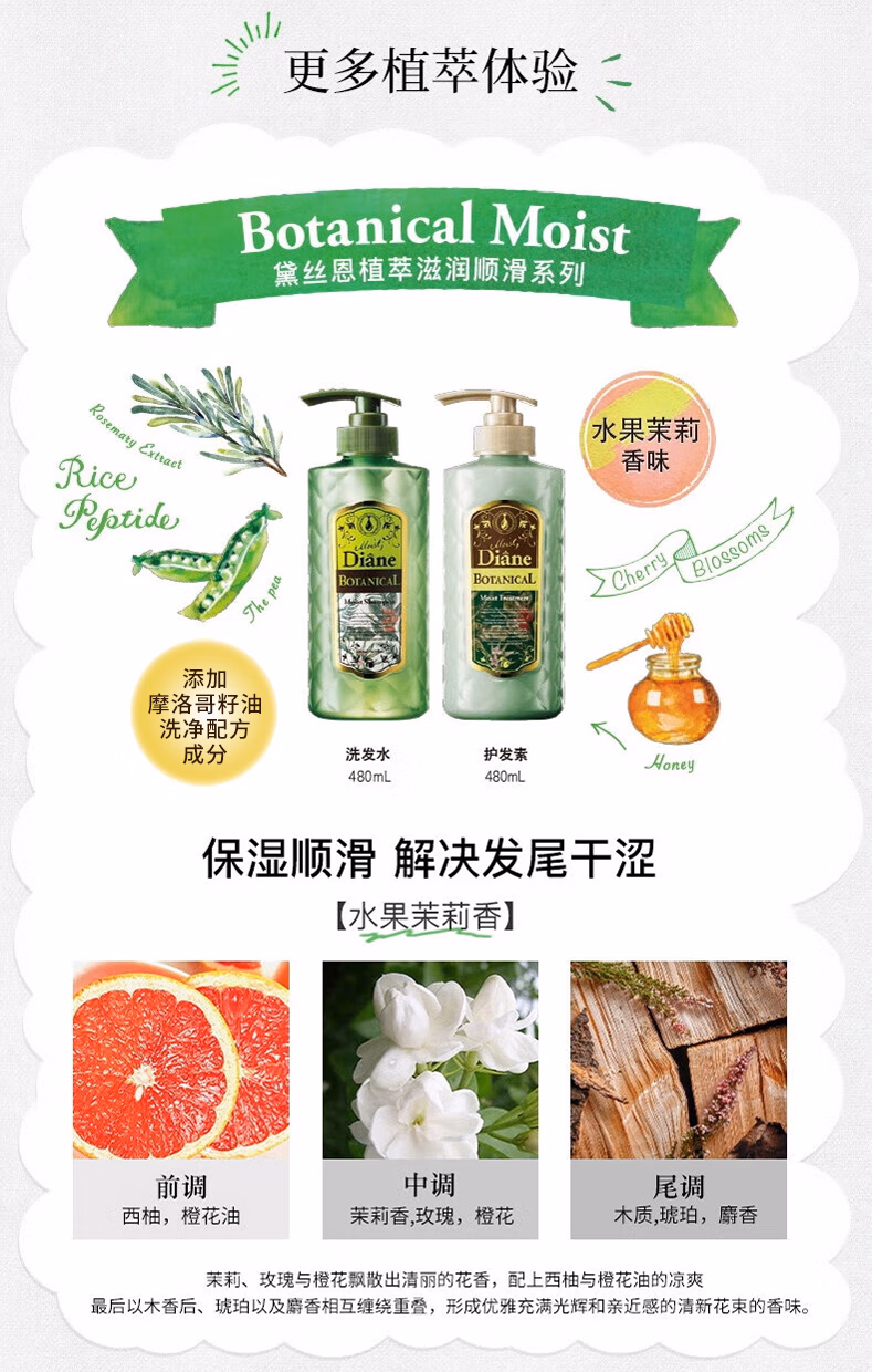 黛丝恩(MoistDiane) 水润轻盈型 植萃480ml 护发素 (计价单位:瓶)