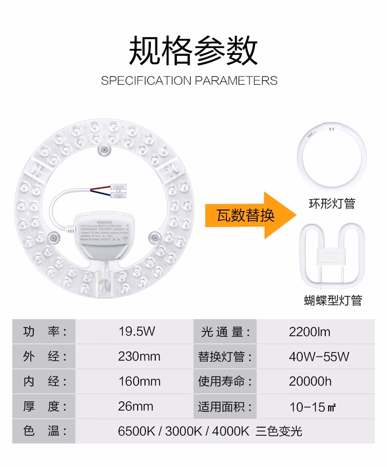 飞利浦(Philips) T5细管 环形 32W 6500K 四针 白光 LED灯管 10.00 个/件 (计价单位:件) 白色