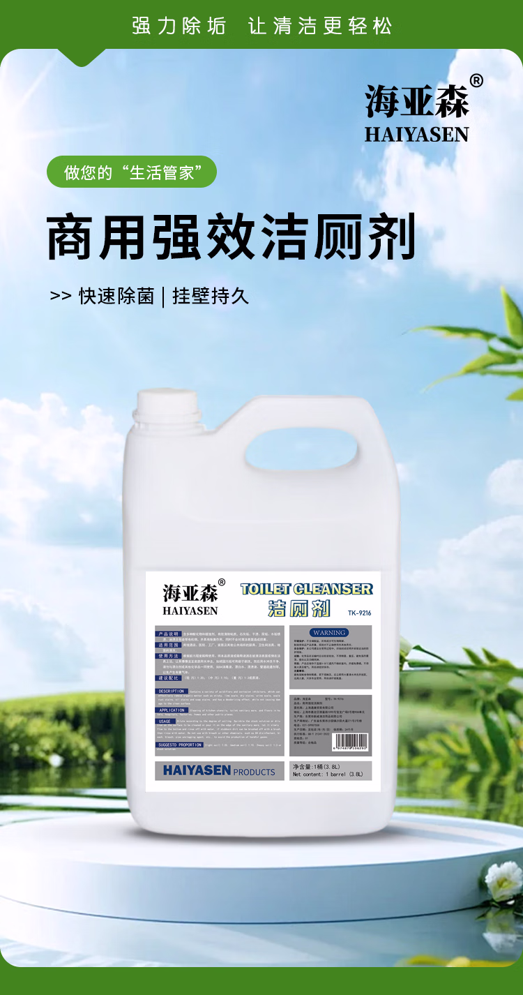 海亚森 TK-9216 3.8L商用强效洁厕剂 洁厕灵 1.00 瓶/桶 (计价单位:桶) 白色