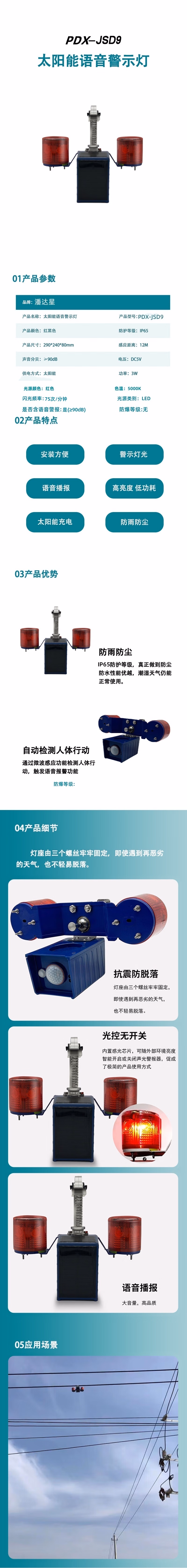 • 商品名称:PDX-JSD9 3W 5000K 太阳能语音警示灯(单位:台) 红黑色