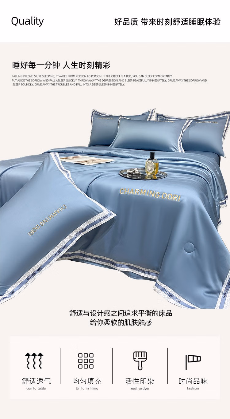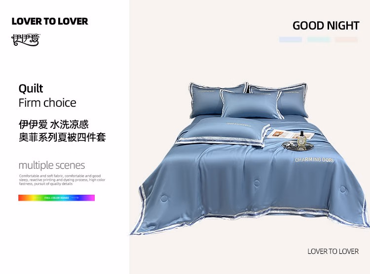 伊伊爱 TJ0RY02301948 200*230cm 水洗凉感奥菲系列夏被四件套 床上套件 (计价单位:套) 奥菲-宾利蓝