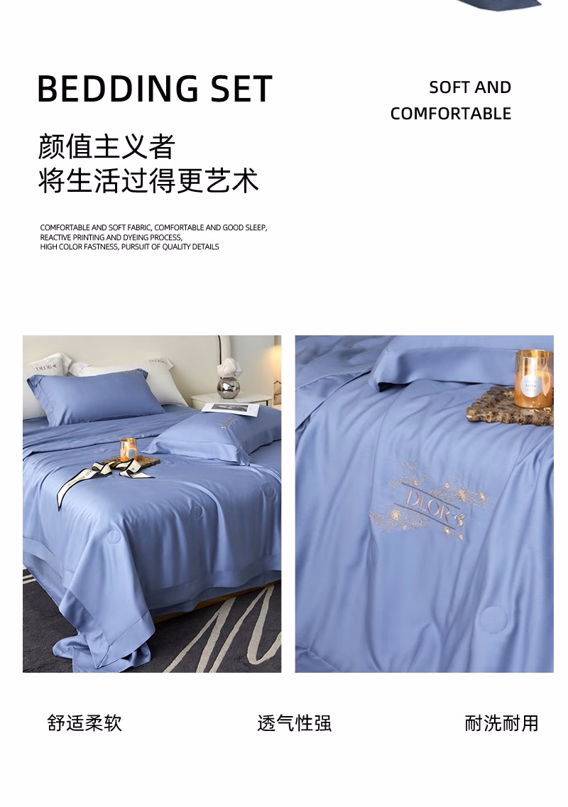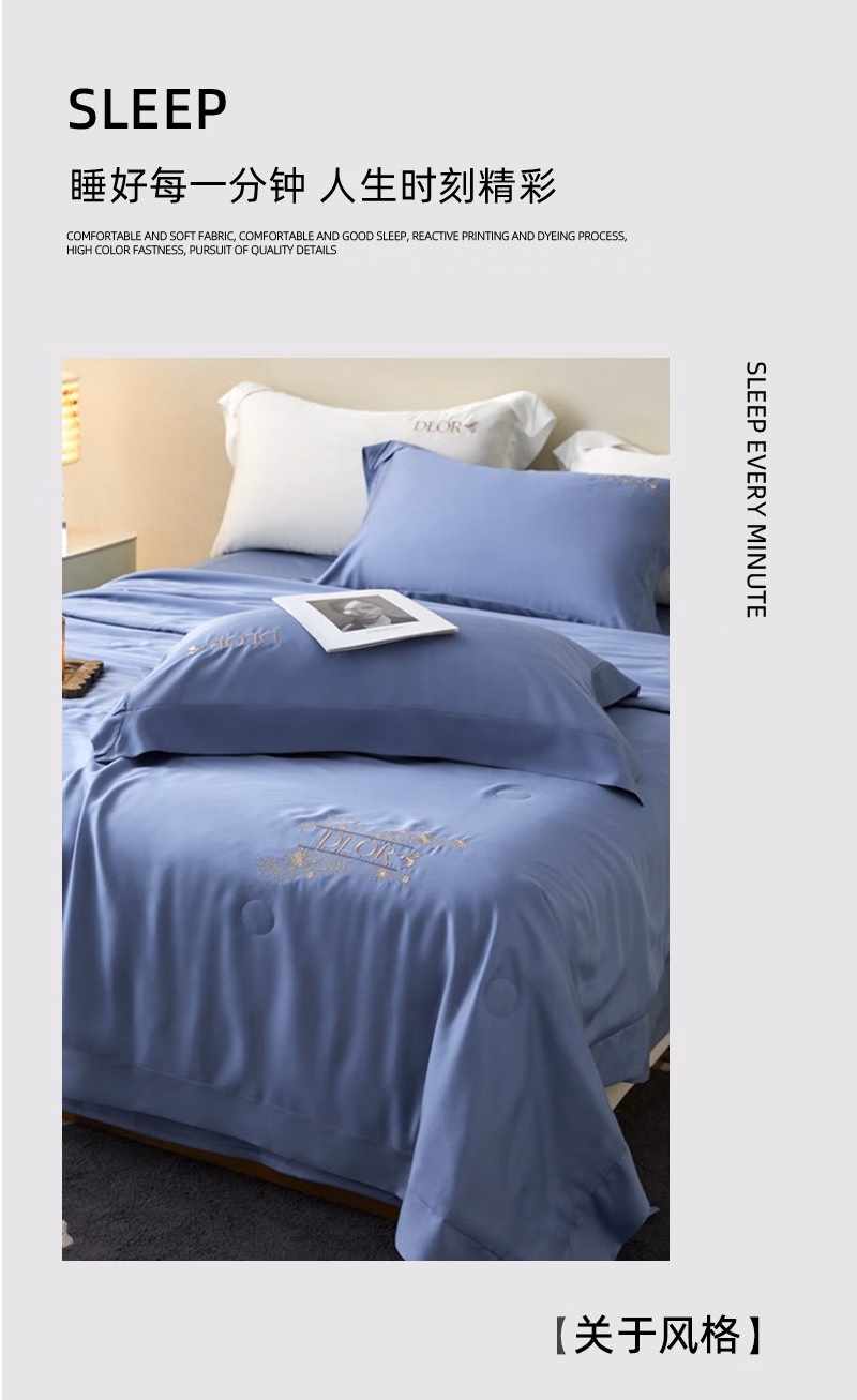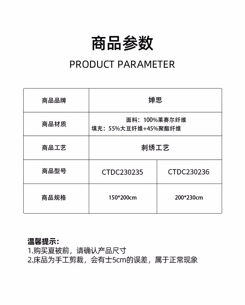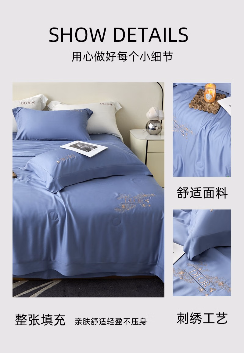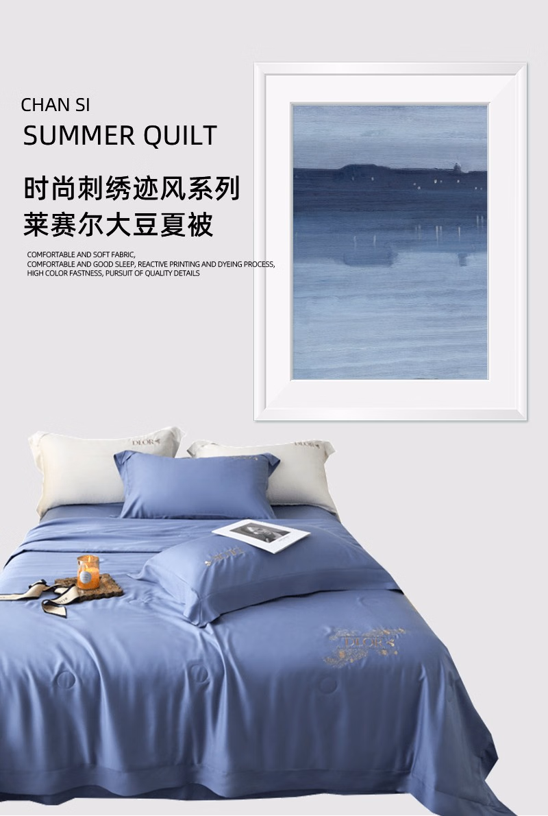 婵思 CTDC230236 200*230cm 时尚刺绣迹风系列莱赛尔大豆夏被 1.00 件/条 (计价单位:条) 迹风运河蓝