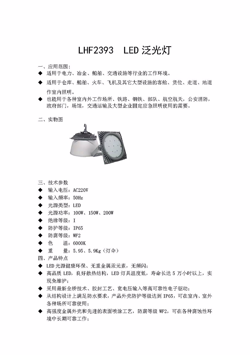 • 商品名称:LHF2393 LED泛光灯 200W 220V 冷光 IP65(计价单位:个)灰色