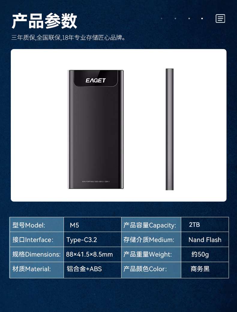 忆捷(EAGET) M5 type-c外接U盘便携迷你 2T 移动存储硬盘 (计价单位:个) 黑色