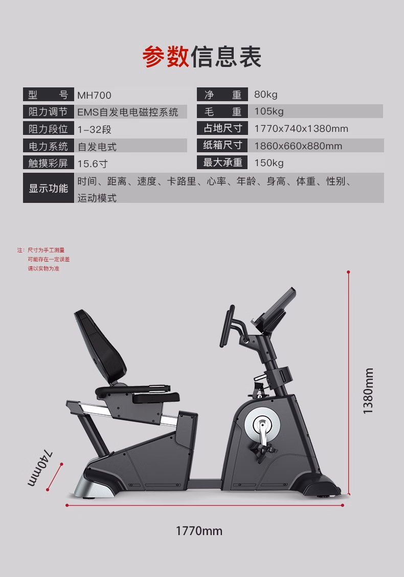 捷瑞特(JOROTO) MH600 自发电卧式 健身车 (计价单位:台) 黑色