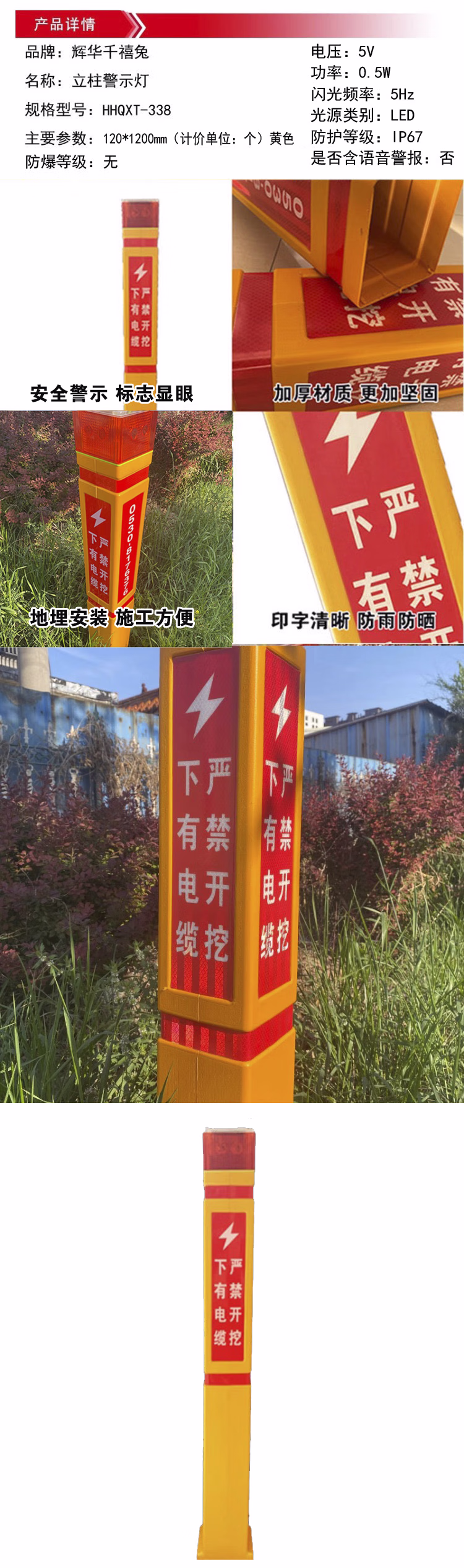 辉华千禧兔 HHQXT-338 5V 0.25W LED IP67 120*1200mm立柱 警示灯 1.00 盏/个 (计价单位:个) 黄色