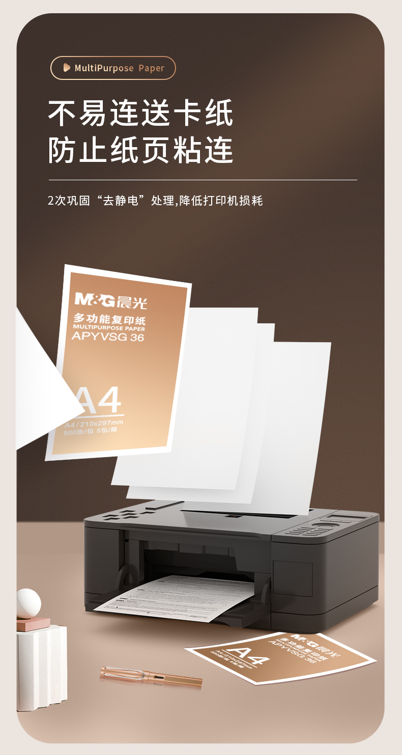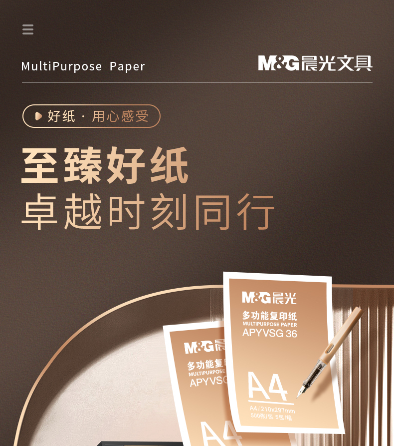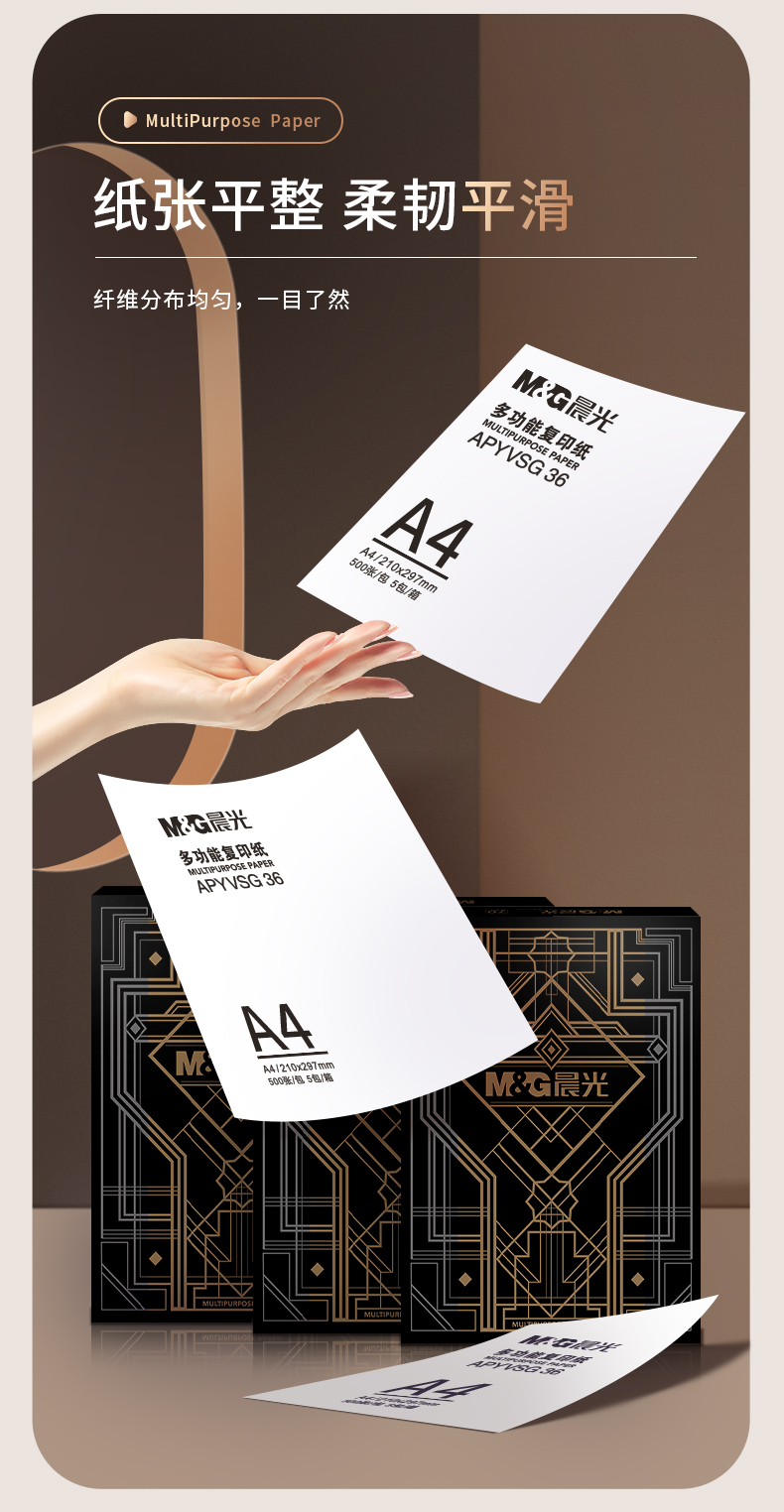 晨光(M&G) 金晨光 A4 80g 加厚双面打印纸 高档品质款复印纸 500张/包 5包/箱(2500张) APYVS39 单位:箱